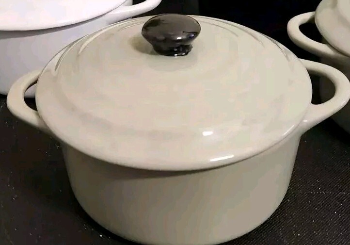 One Grey Creative Co-op Stoneware Mini/Individual Baker Dish with 2 Lids. You will get 2 lids. It's always nice to have a backup! This is in excellent used condition. I will not separate & I'm not taking offers. I'm not sure if they have ever been used. I also have another listing of 2 bakers. Combined shipping is done in the form of a refund once the orders are packed.