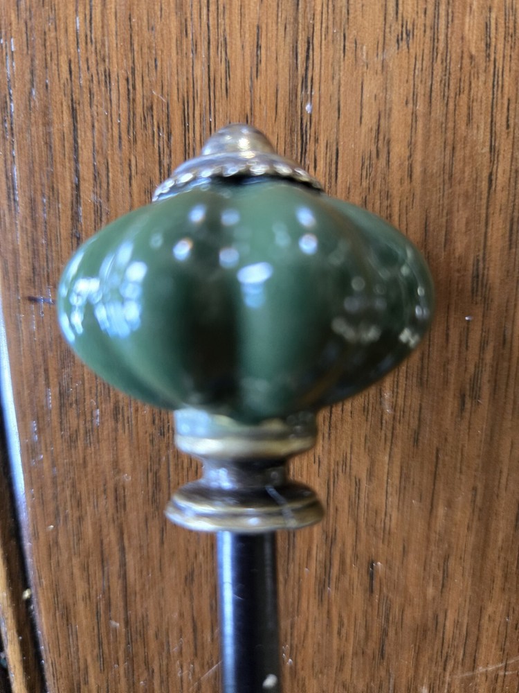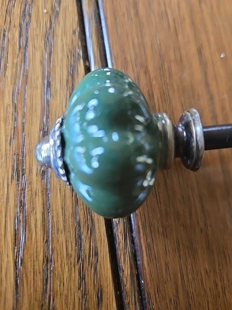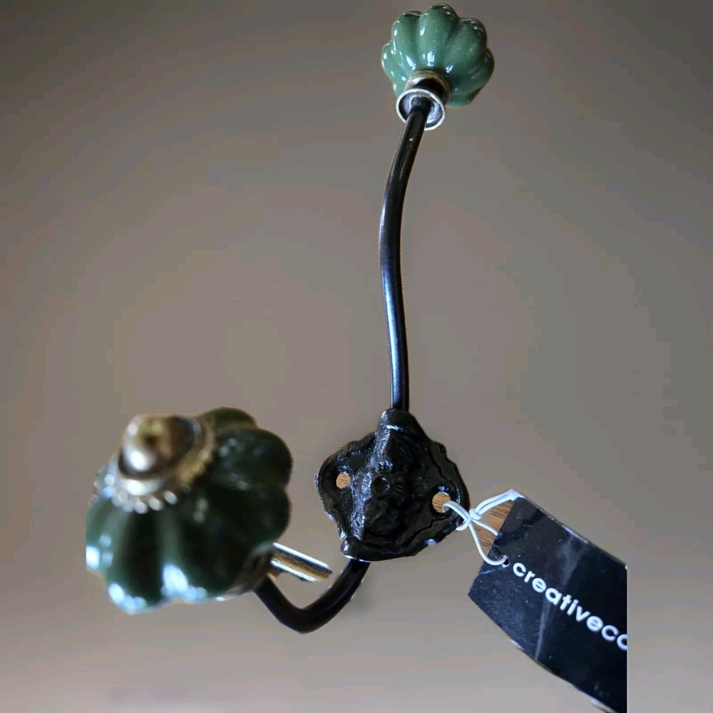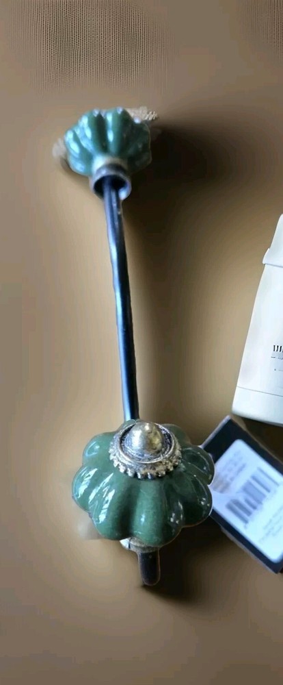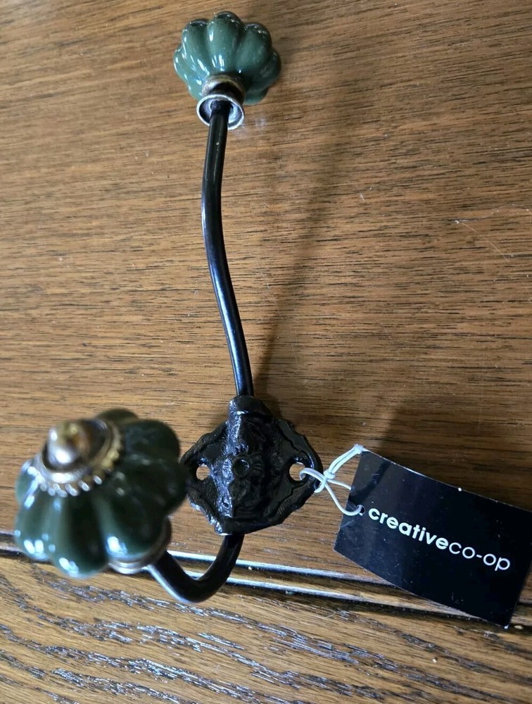 Metal Ceramic Wall Hook "Creative Co-op" Organizer Towel Hat Coat Clothes Hook Dark green ceramic knobs. The approximate length is seven inches extends from the wall, approximately four inches....