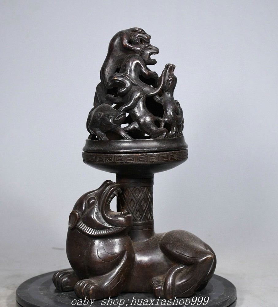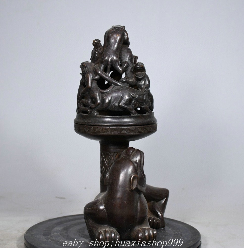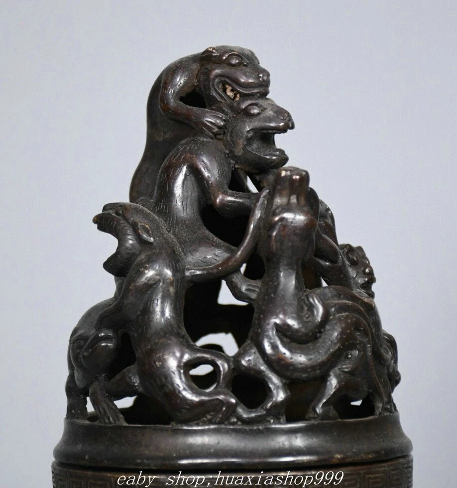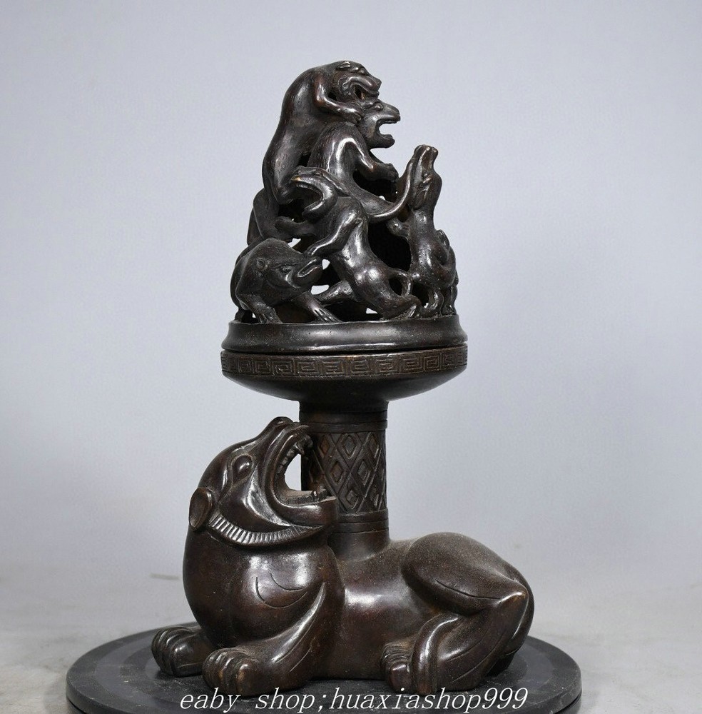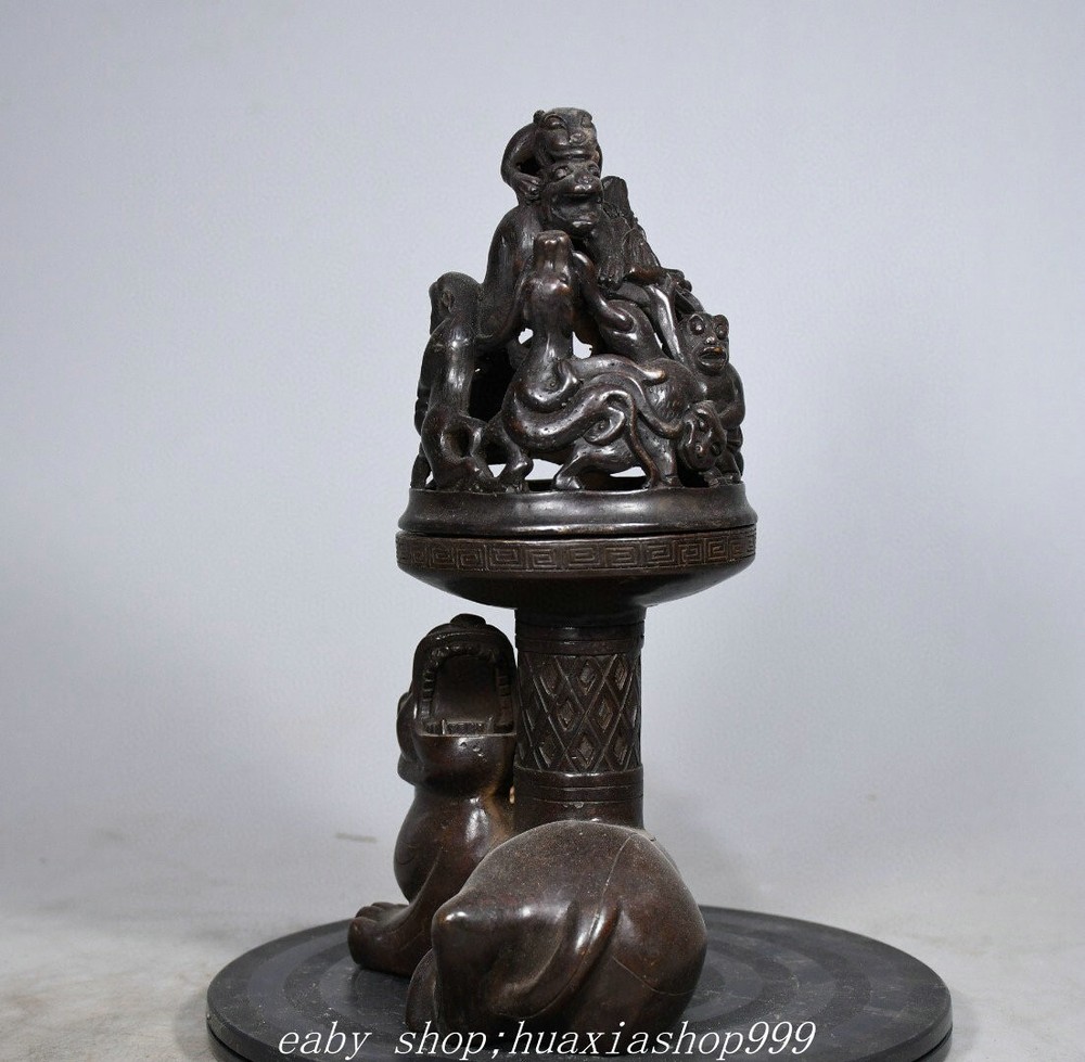 **** Welcome to our antique & Collectable Shop : smile-shop99**** Description: Here is an 10" Old Dynasty Marked Bronze Dragon Bear Beast Joss Boshan Incense Burner Censer . It is in good condition, and was created by skilled craftsmen in traditional style with fine handcrafts.This is a great piece of valuable collection, a valuable personal alter or a very good present. the handwork is very fine with incredible detailling. Don't miss out this chance to get it .Wish you good luck! Material : Bronze Origin: Chinese Style : Same as photos showing Size : High 9.8 Long 5.9 Breadth (inch ) Condition Perfect Condition. Perfect, with no scratches, flaws or repairs. Weight: 2.7 KG----included the weight of packing materials Shipping cost to all over the world countries in Free Honored Customers: We are selling the collectibles products and crafts in Beijing ,China since 1993 and collected them all over the world all the time . In our shop the bronze sculpture, animal, vase, urn, flowerpot,Incense Burner.Table chair sets. Militaria goods. buddha statues, Bodhisattva Statues, Buddhist Ritual Items etc is our speciality .Many of the items we sell come from our own personal collection and have been in our family for a very long time .My great-grandfather was the first in this family to start collecting art & antiques when he still lived in San Xi and Tibet around 1922 ,some of the paintings he once collected can now be seen in museums around the globe.We won't make money from the shipping cost, if you dislike the item when you receive it,we can refund all of your money to you within thirty days. Please confidence for bidding . We recommend the combine shipping and offer you an big price discount if you order more items together ! 2025.2.16 九号