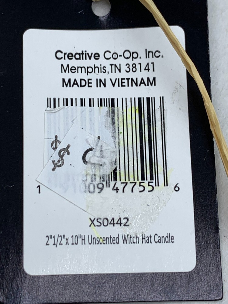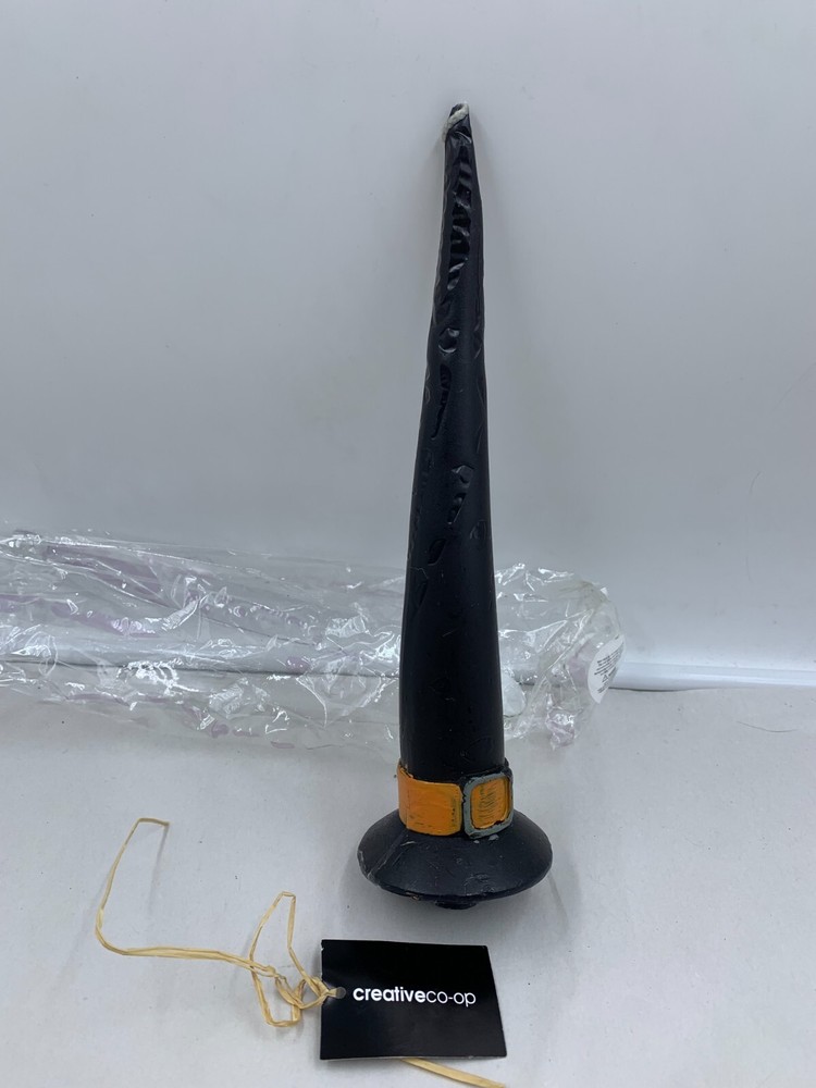 For sale is a new in package Witches hat candle by creative co-op. Measures: 10" x 2.5. Please review the description. pictures and measurements. The item is located in a smoke free, pet friendly home. Feel free to email me any questions. Thanks for stopping by and shopping. All items will only be mailed to verified Ebay address, never to alternative addresses