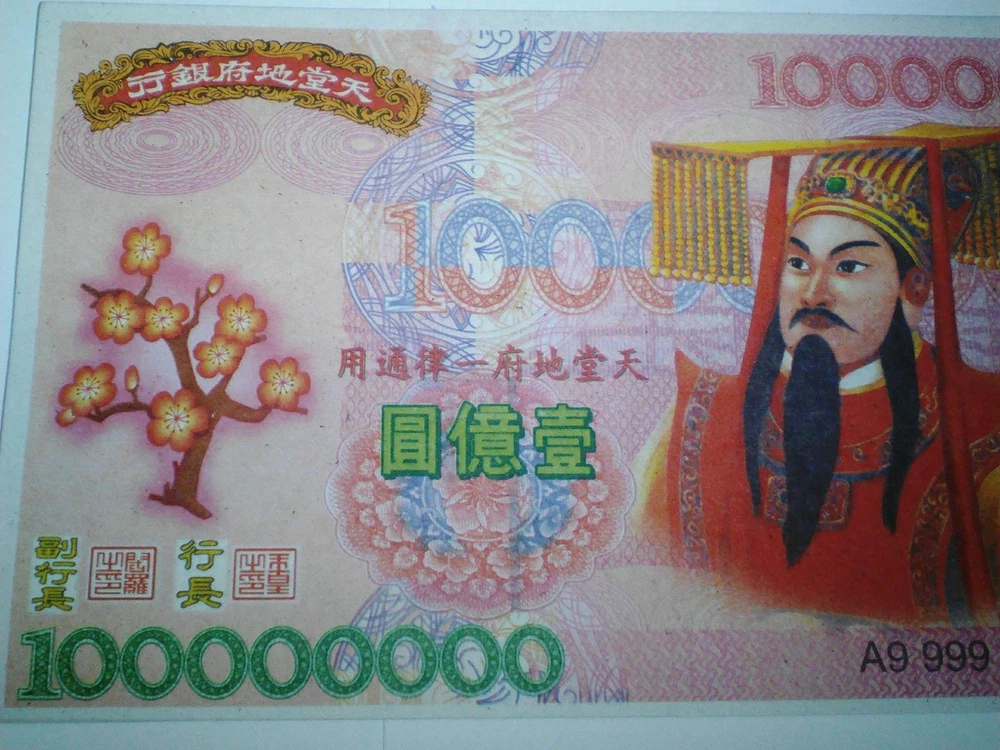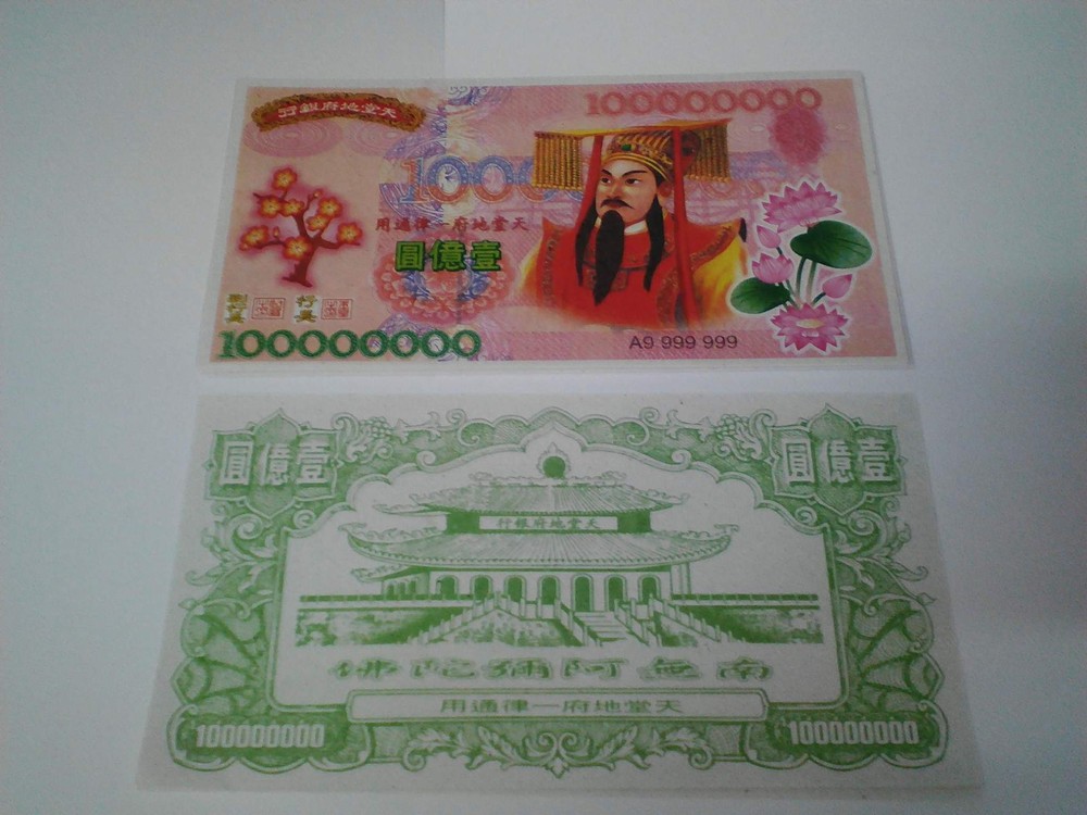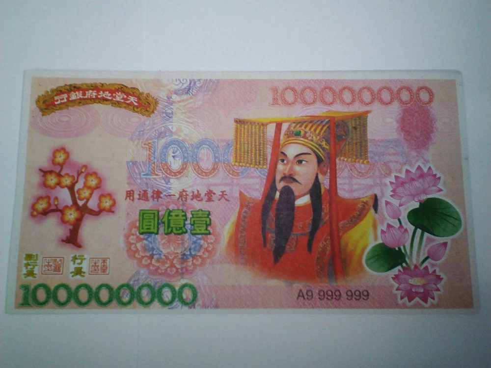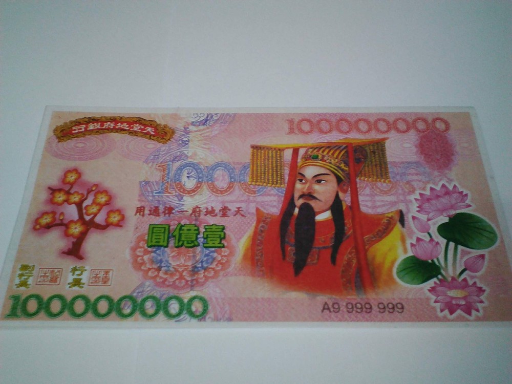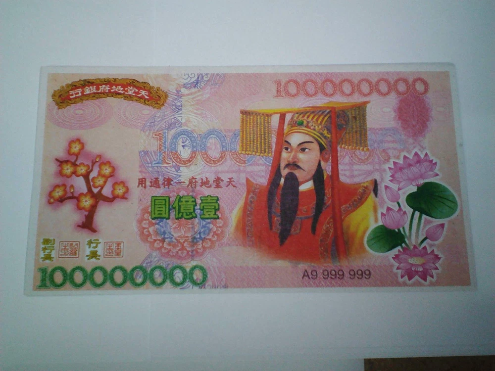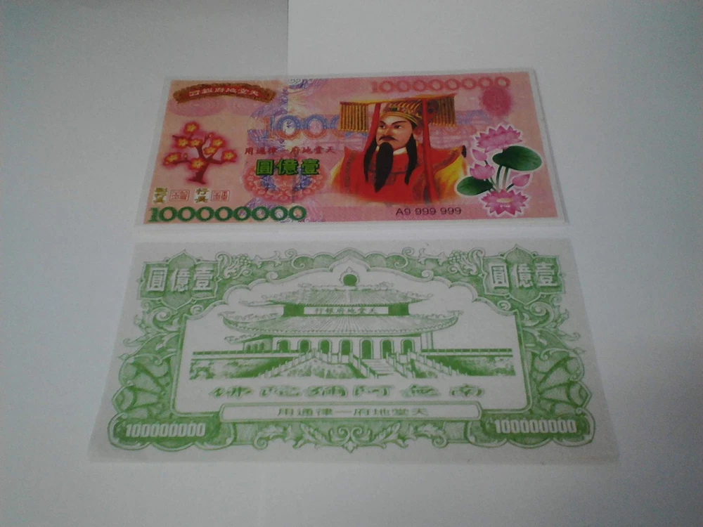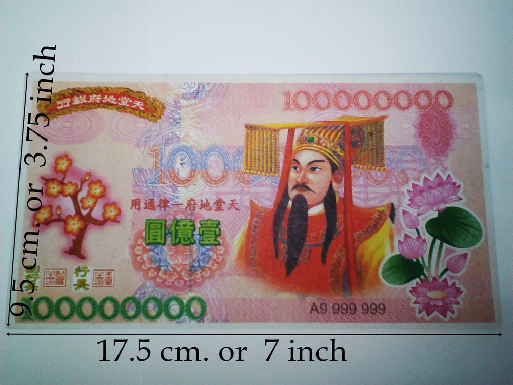 100 X Giant Heaven Hell Money Bank Notes Chinese $100000000 Joss Paper. Materisl: Rice Paper Kang Yi Yin Jua Kang Yi Yin Jua or Kgetek Bank. The paper was published in the World Bank's Climate slumping Angels, which was endorsed Indra (Jade Emperor) was spent in the library world and respect the landscape These hell bank notes feature an image of the Jade Emperor, the presiding monarch of heaven in Taoism. The notes are used to burn for the 'Hell Gods,' offering them monetary distraction so they will leave mortals at peace. along the way. If children have to find their own ancestors came to the cost of traveling to meet a child Kin Man festival in various Chinese cities. They are also commonly burned in Asia as offerings for ancestors and requests for blessings of prosperity and good fortune. Shipping Policy We pack and dispatch items within 24 hours (except holidays) after payment cleared. Seller is not responsible for “Import Tax” fees in buyer’s country. The package will be shipped directly from Thailand via STANDARD SMALL PACKAGE AIRMAIL, and it will take about 11-23 business days. Business days are Monday - Friday. (not included Sat-Sun & public holiday). !!Don’t Buy or Bid if you can’t wait for the shipping time!!