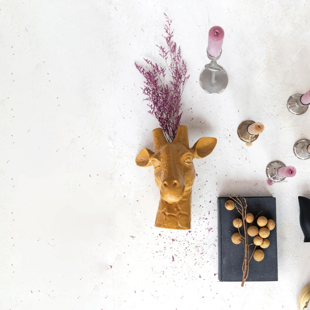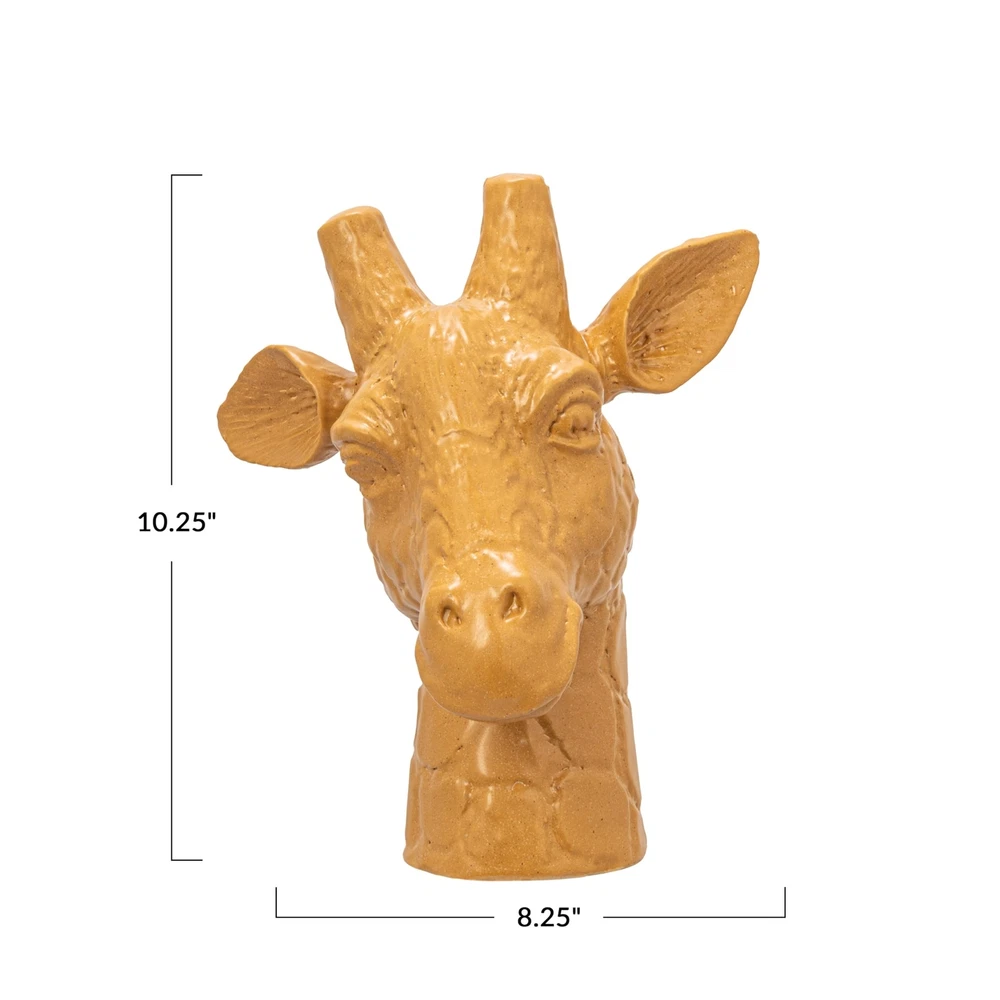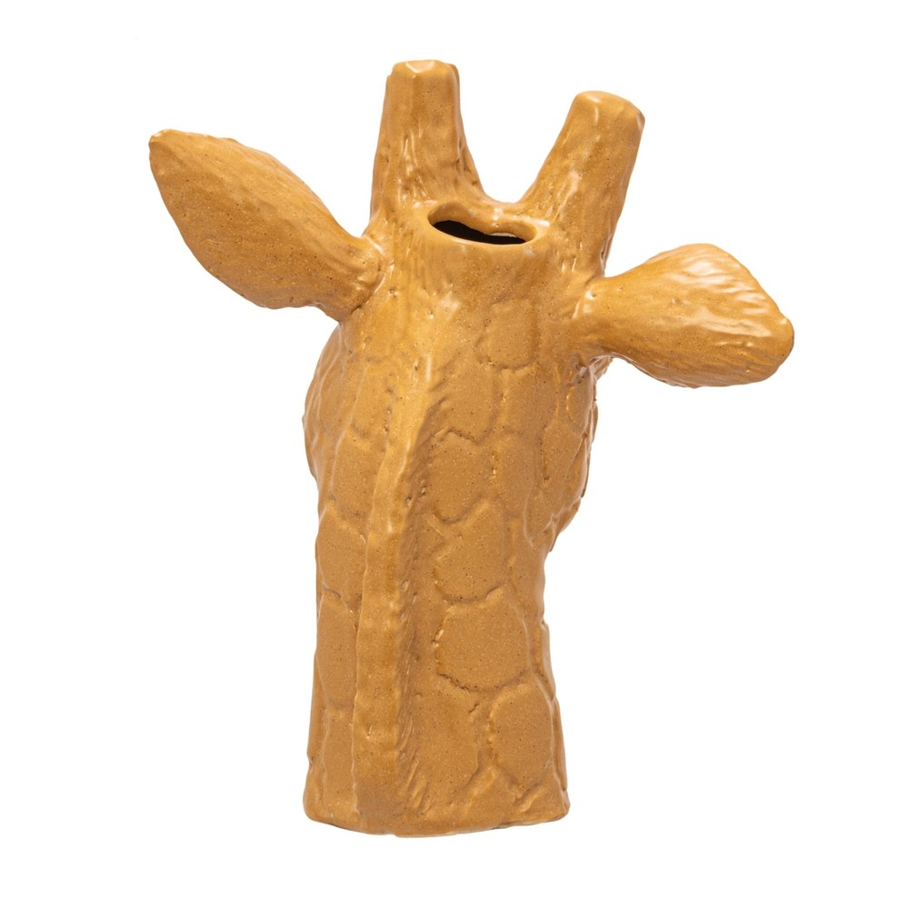10.25 Inches Stoneware Giraffe Head Vase, Reactive Glaze, Matte Mustard Product Details Material: Stoneware Color: Yellow Brand: Creative Co-Op Shape: Irregular shape Style: Modern Material: Stoneware Color: Yellow Brand: Creative Co-Op Shape: Irregular shape Style: Modern Special Feature: Handmade Pattern: Animal Print Theme: Flowers Recommended Uses For Product: Indoor Room Type: Di, Bathroom, Living Room, Bedroom Finish Type: Matte Number of Pieces: 1 Occasion: Women, Mother's Day, Wedding, Graduation Installation Type: Table Top UPC: 191009597490 Manufacturer: Creative Co-Op Package Dimensions: 12.5 x 11 x 9.5 inches Item Weight: 3.19 pounds Country of Origin: China Item model number: DF8053 Finish types: Matte Batteries required: No This vase has a giraffe head design with intricate details and a matte mustard color with a reactive glaze that makes it unique and individual The perfect addition to homes with eclectic, whimsical, or nature-inspired decor styles, it is playful and artistic design adds a touch of safari-inspired charm to any space This stoneware giraffe head vase has a small opening for flowers and a sturdy and whimsical design Made of stoneware The vase measures 8.25 inches long, 7.13 inches wide, and 10.25 inches tall Add some style and personality to any home or office with these stunning vases. These vases come in various shapes, sizes, materials, and designs, offering a wide range of options to suit any preference and decor. Whether looking for a simple and elegant ceramic vase, a colorful and whimsical glass vase, a rustic and natural wood vase, or a modern and sleek metal vase, there is something for everyone in this collection. These vases are perfect for displaying flowers, plants, candles, or other decorative items, or simply as standalone accents that will enhance the beauty and charm of any space.