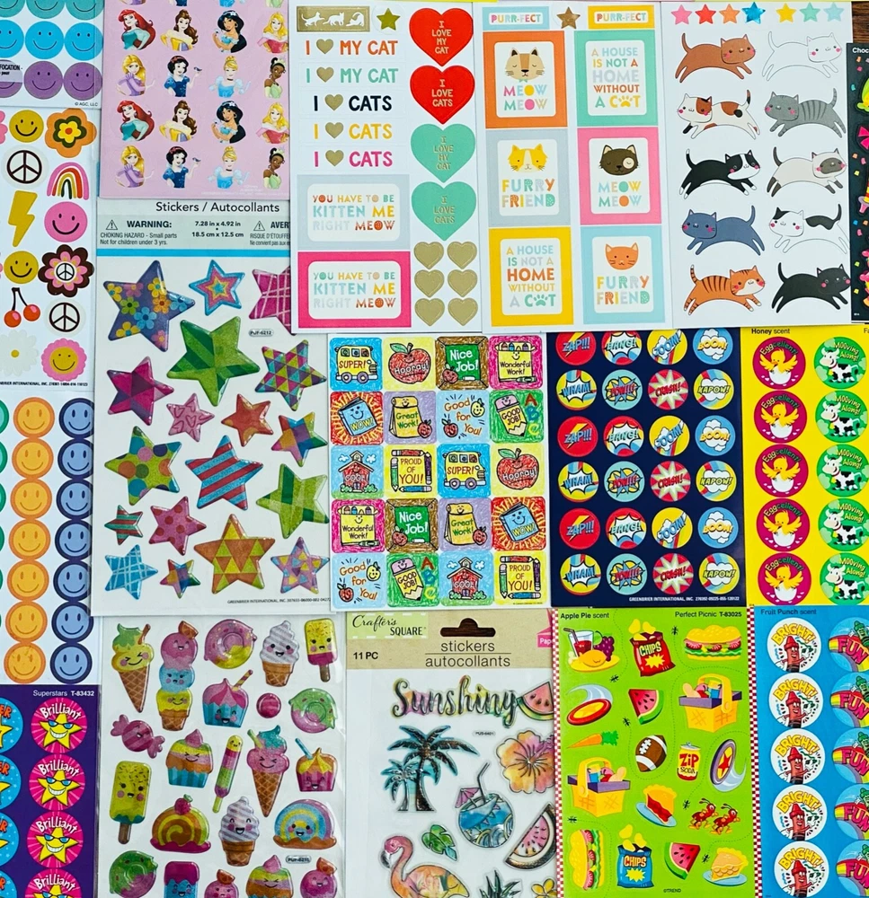 All stickers are BRAND NEW | Still in their original packaging! HUGE Mixed Sticker Lot | The Ultimate Kit | Qty. 1088+ Stickers | High Quality Only! Fun Assortment of Puffy, Scrapbook, Cartoons, Bubble, Pop Up Stickers Packs For Everyone! You will receive 29+ Sticker Sheets of beautiful colorful assortment. The Pack will include 1088+ Stickers overall! I have included a large variety of pictures of the assortment available. The pictures give you an idea of what you will be receiving. Please Note: You will not receive everything pictured. Please contact me with any special requests. This HUGE Variety of fun designs stickers can be used in parties, classroom, school and home, good for reward for students, potty training, adding inside a birthday card, game activities, entertaining toddlers, etc. Perfect Gifts for Kids & all Occasions: Can be given as a gift for kids, girls, boys, toddlers, teens, students, friends, and classmates, they will love it! Each package of stickers is a different style & theme with some lovely embellishments like rhinestones, ribbons, buttons and other 3D details that make these quality stickers look so unique!