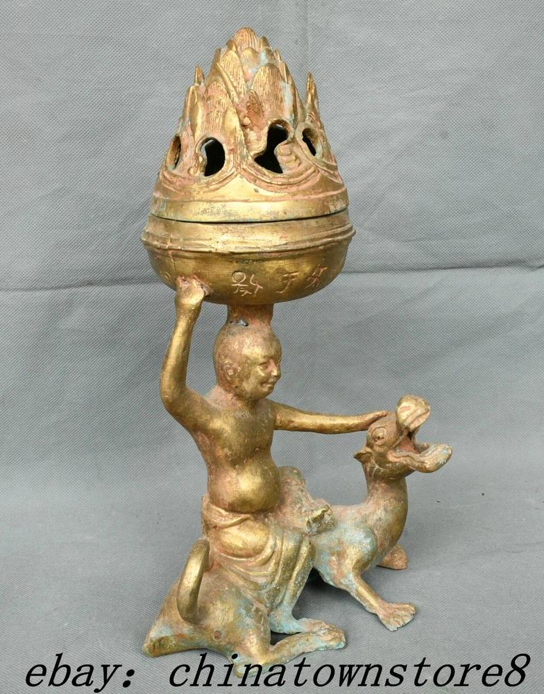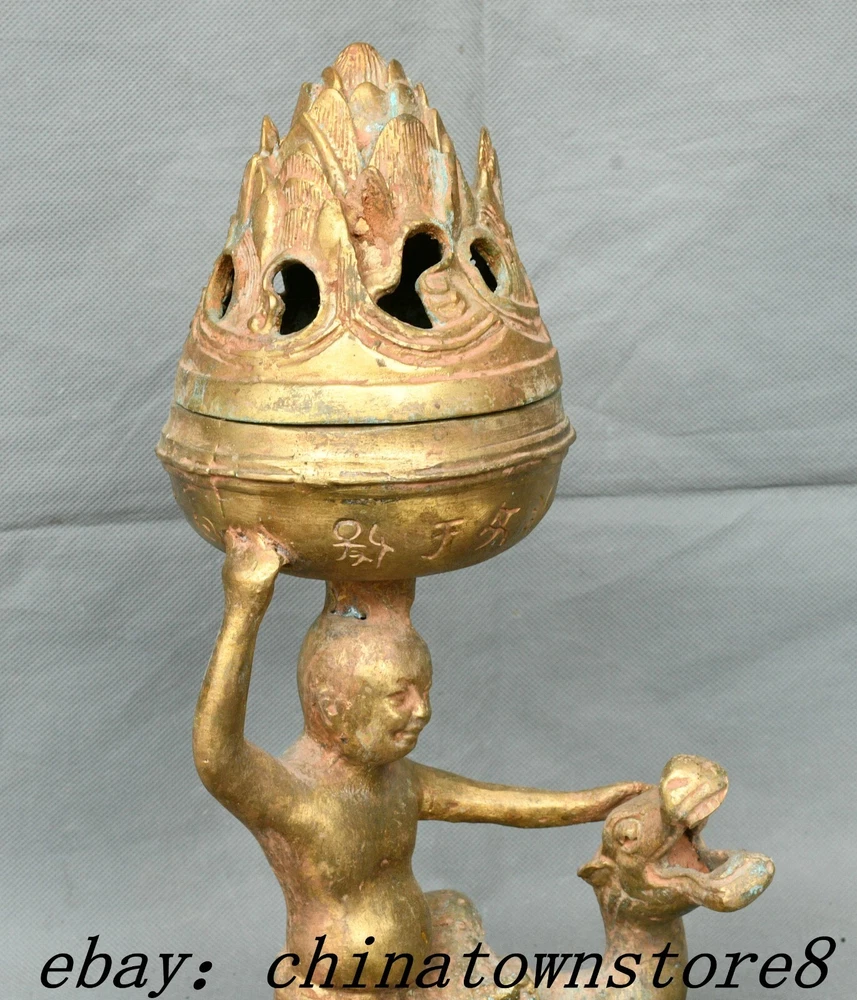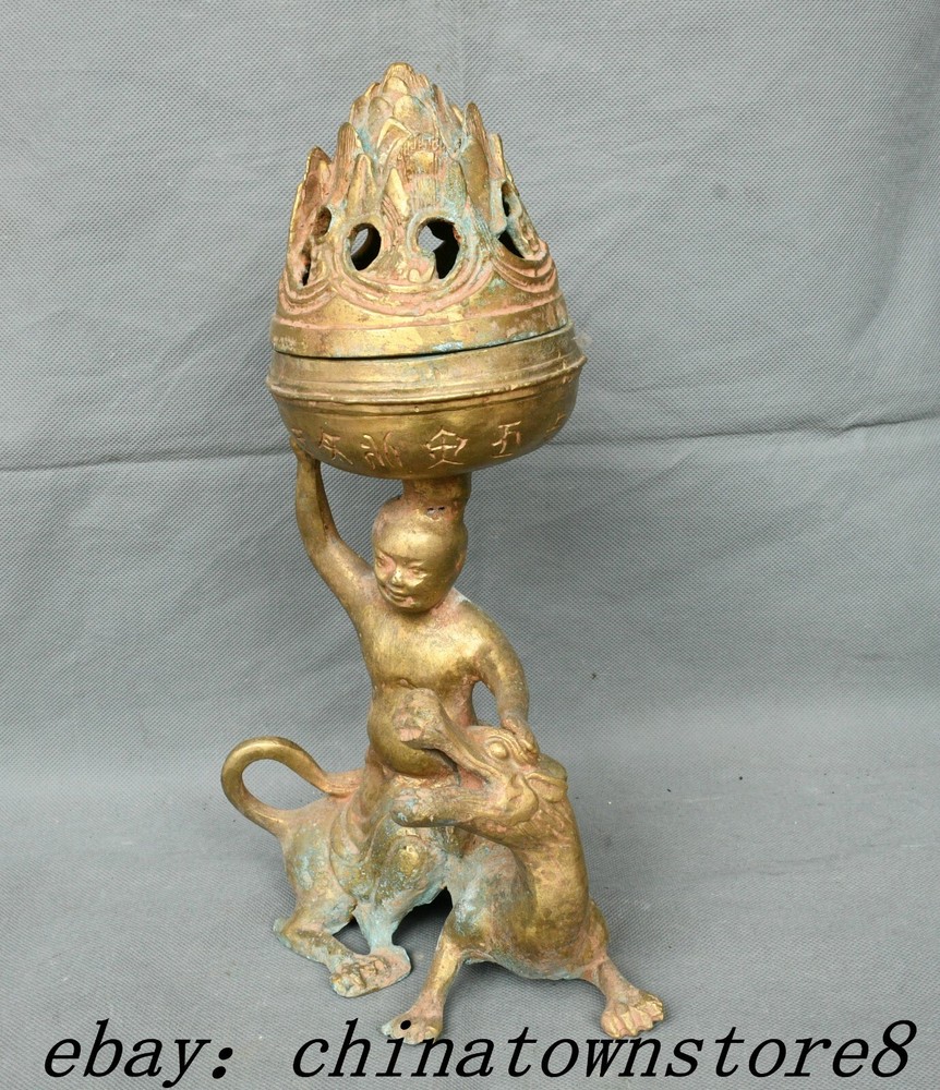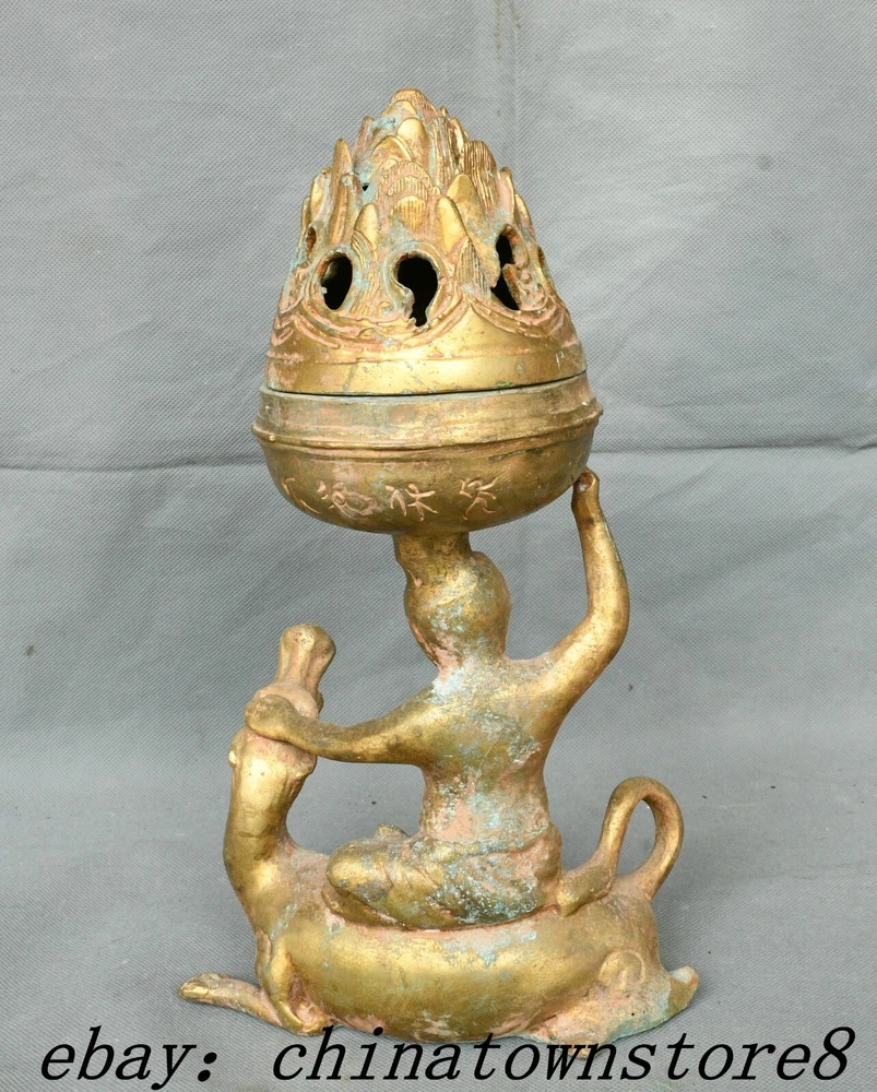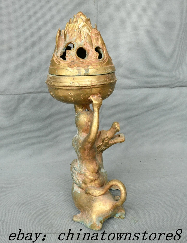 **** Welcome to our antique & Collectable Shop : Chinatownstore8**** Description: Here is an 12" Old Dynasty Bronze Ware Gold People Beast Boshan joss Incense Burner Censer . It is in good condition , and was created by skilled craftsmen in traditional style with fine handcrafts.This is a great piece of valuable collection, a valuable personal alter or a very good present. the handwork is very fine with incredible detailling. Don't miss out this chance to get it.Wish you good luck! . Material : Bronze Ware Gold Origin : Chinese Style : Same as photos showing Size : Hight 11.8 Long 6.6 Breadth 3.9 (inch) Condition Perfect Condition. Perfect, with no scratches, flaws or repairs. Weight: 2.7 KG----included the weight of packing materials Shipping cost to all over the world countries in Free Honored Customers: We are selling the collectibles products and crafts in Beijing ,China since 1993 and collected them all over the world all the time . In our shop the bronze sculpture, animal, vase, urn, flowerpot,Incense Burner.Table chair sets. Militaria goods. buddha statues, Bodhisattva Statues, Buddhist Ritual Items etc is our speciality .Many of the items we sell come from our own personal collection and have been in our family for a very long time .My great-grandfather was the first in this family to start collecting art & antiques when he still lived in San Xi and Tibet around 1922 ,some of the paintings he once collected can now be seen in museums around the globe.We won't make money from the shipping cost, if you dislike the item when you receive it,we can refund all of your money to you within thirty days. Please confidence for bidding . We recommend the combine shipping and offer you an big price discount if you order more items together ! 2023.8.6 十二号