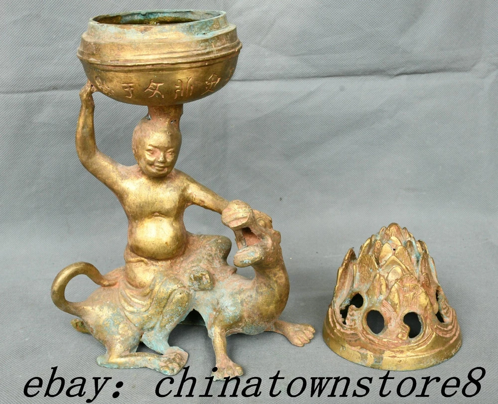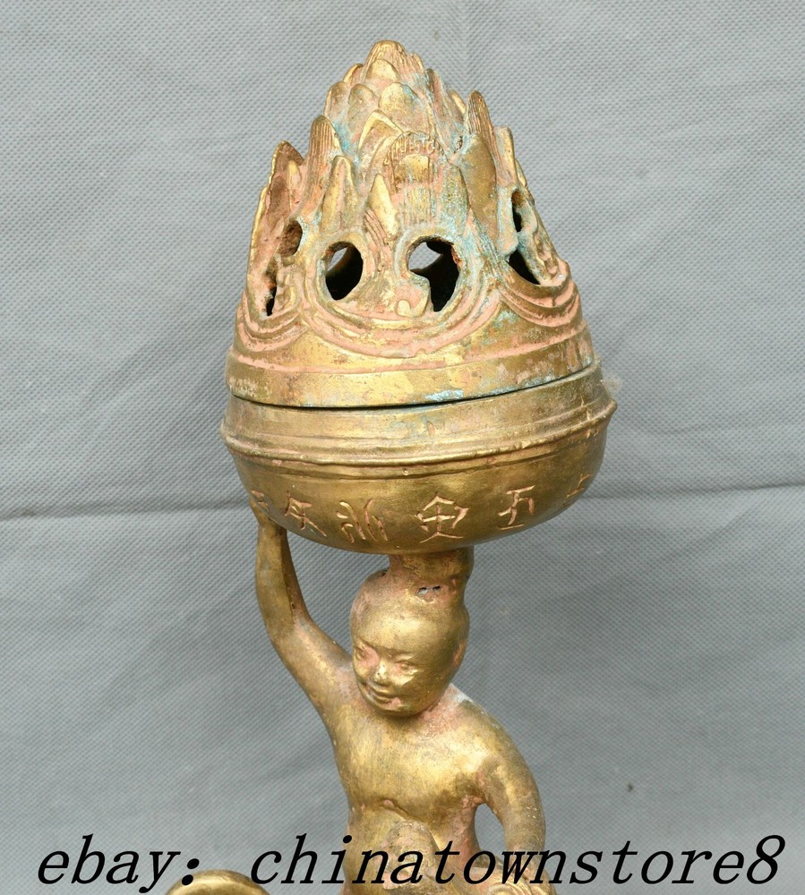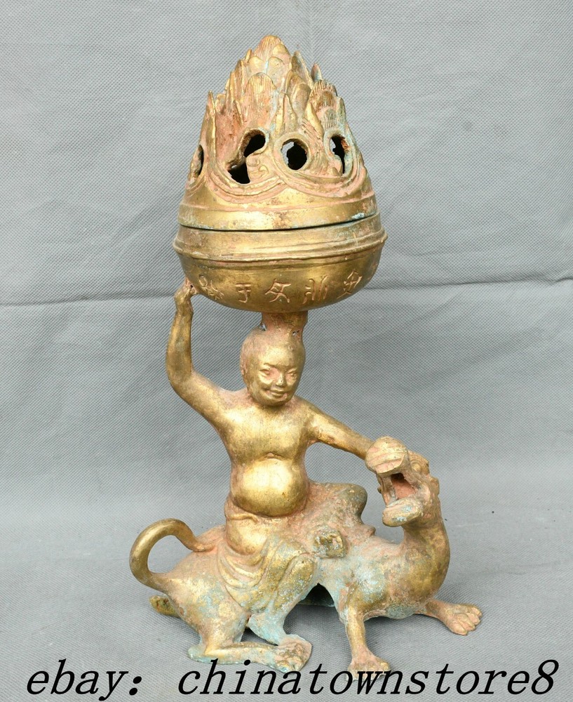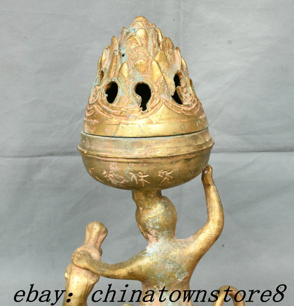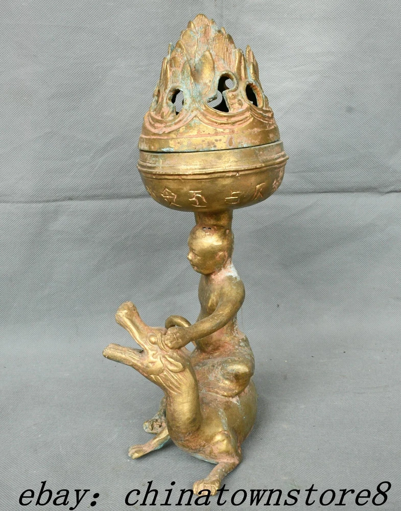 **** Welcome to our antique & Collectable Shop : Chinatownstore8**** Description: Here is an 12" Old Dynasty Bronze Ware Gold People Beast Boshan joss Incense Burner Censer . It is in good condition , and was created by skilled craftsmen in traditional style with fine handcrafts.This is a great piece of valuable collection, a valuable personal alter or a very good present. the handwork is very fine with incredible detailling. Don't miss out this chance to get it.Wish you good luck! . Material : Bronze Ware Gold Origin : Chinese Style : Same as photos showing Size : Hight 11.8 Long 6.6 Breadth 3.9 (inch) Condition Perfect Condition. Perfect, with no scratches, flaws or repairs. Weight: 2.7 KG----included the weight of packing materials Shipping cost to all over the world countries in Free Honored Customers: We are selling the collectibles products and crafts in Beijing ,China since 1993 and collected them all over the world all the time . In our shop the bronze sculpture, animal, vase, urn, flowerpot,Incense Burner.Table chair sets. Militaria goods. buddha statues, Bodhisattva Statues, Buddhist Ritual Items etc is our speciality .Many of the items we sell come from our own personal collection and have been in our family for a very long time .My great-grandfather was the first in this family to start collecting art & antiques when he still lived in San Xi and Tibet around 1922 ,some of the paintings he once collected can now be seen in museums around the globe.We won't make money from the shipping cost, if you dislike the item when you receive it,we can refund all of your money to you within thirty days. Please confidence for bidding . We recommend the combine shipping and offer you an big price discount if you order more items together ! 2023.8.6 十二号