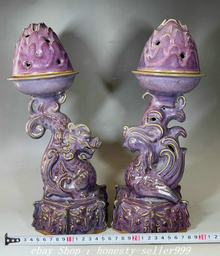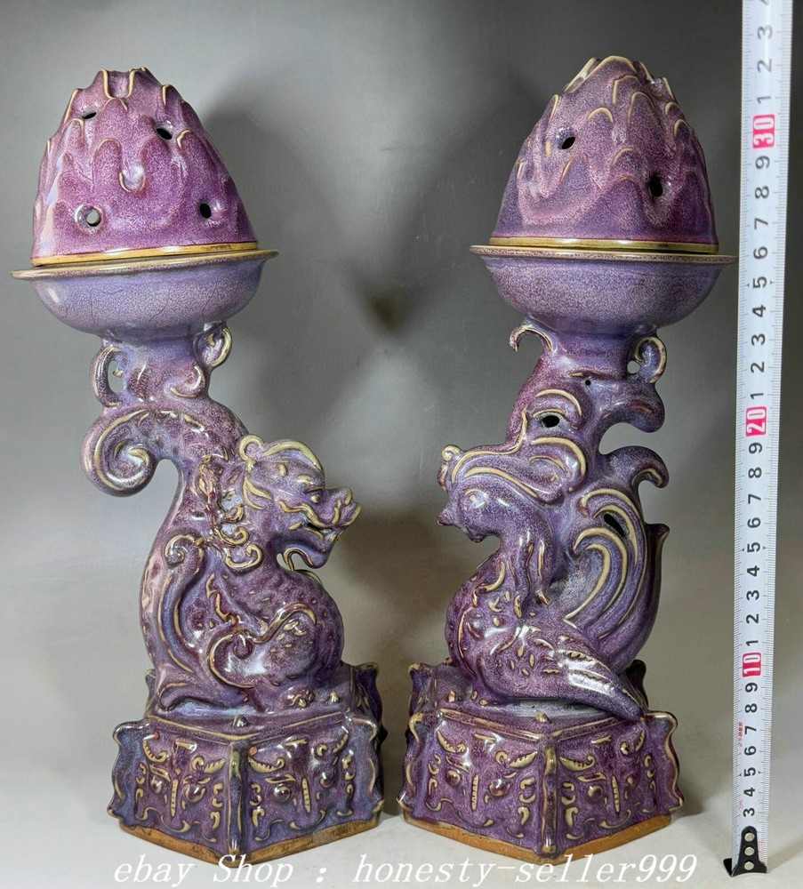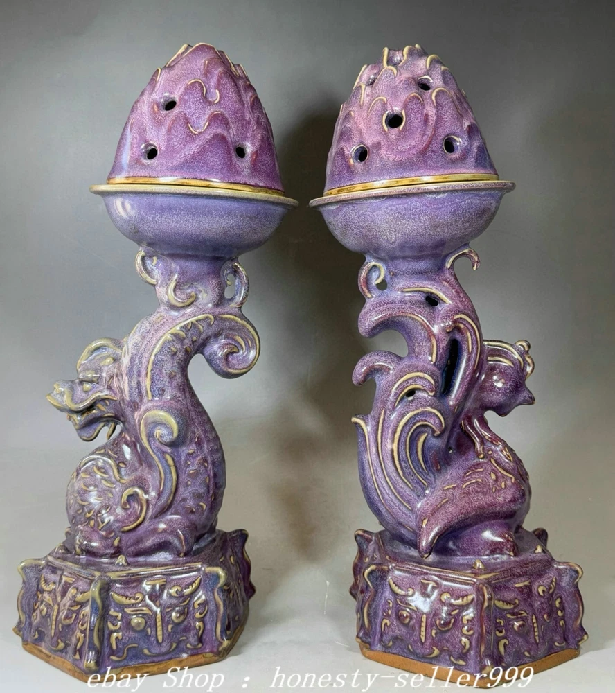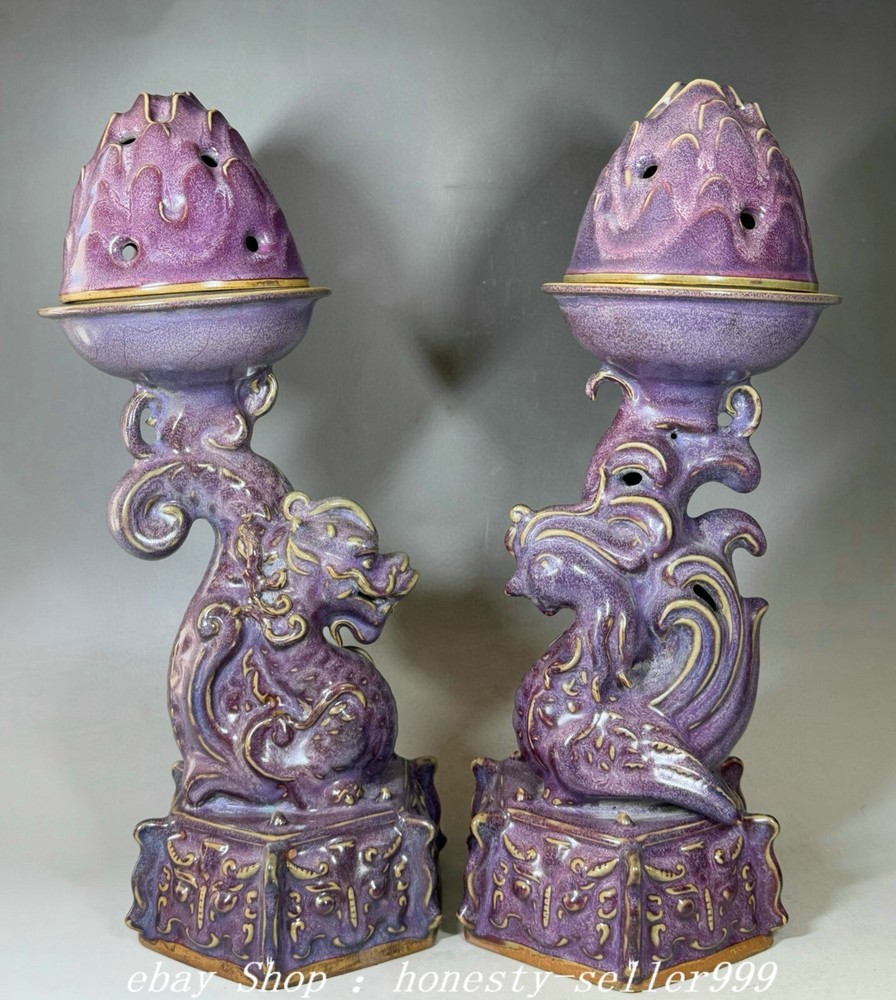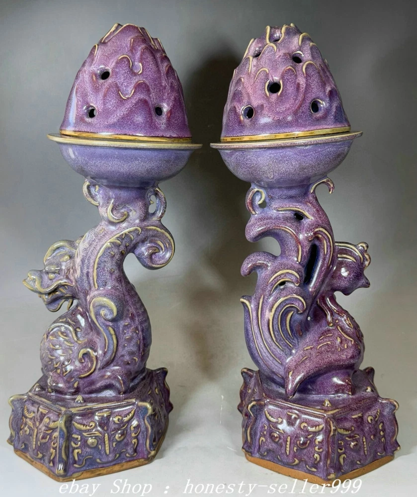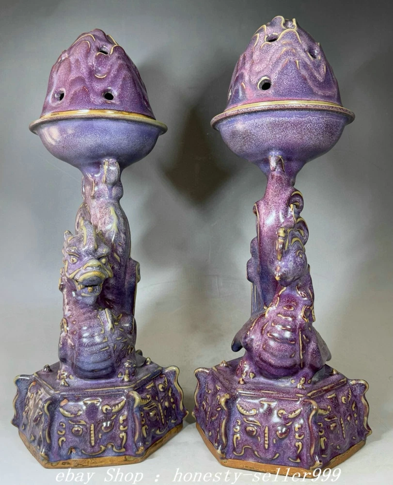 **** Welcome to our antique & Collectable Shop : honesty-seller999 **** Description: Here is an 12" Old Jun Kiln Porcelain Dragon Phoenix Boshan Joss Incense Burner Censer Pair . It is in good condition, and was created by skilled craftsmen in traditional style with fine handcrafts.This is a great piece of valuable collection, a valuable personal alter or a very good present. the handwork is very fine with incredible detailling. Don't miss out this chance to get it .Wish you good luck! Material : Jun Kiln Porcelain Origin: China Size : High 12.5 Long 4.7 Breadth (inch) Condition :Good Confition Weight : 4.6 KG----included the weight of packing materials Shipping cost to all over the world countries in Free Honored Customers: We are selling the collectibles products and crafts in Beijing ,China since 1993 and collected them all over the world all the time . In our shop the bronze sculpture, animal, vase, urn, flowerpot,Incense Burner.Table chair sets. Militaria goods. buddha statues, Bodhisattva Statues, Buddhist Ritual Items etc is our speciality .Many of the items we sell come from our own personal collection and have been in our family for a very long time .My great-grandfather was the first in this family to start collecting art & antiques when he still lived in San Xi and Tibet around 1922 ,some of the paintings he once collected can now be seen in museums around the globe.We won't make money from the shipping cost, if you dislike the item when you receive it,we can refund all of your money to you within thirty days. Please confidence for bidding . We recommend the combine shipping and offer you an big price discount if you order more items together ! 2025.2.7 七 号