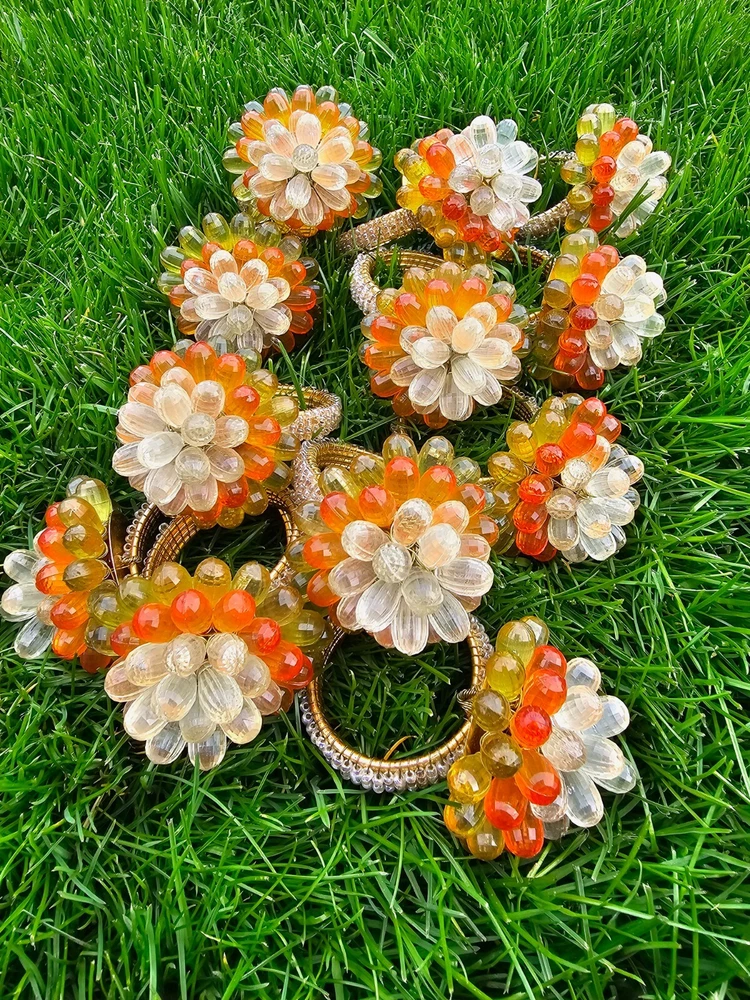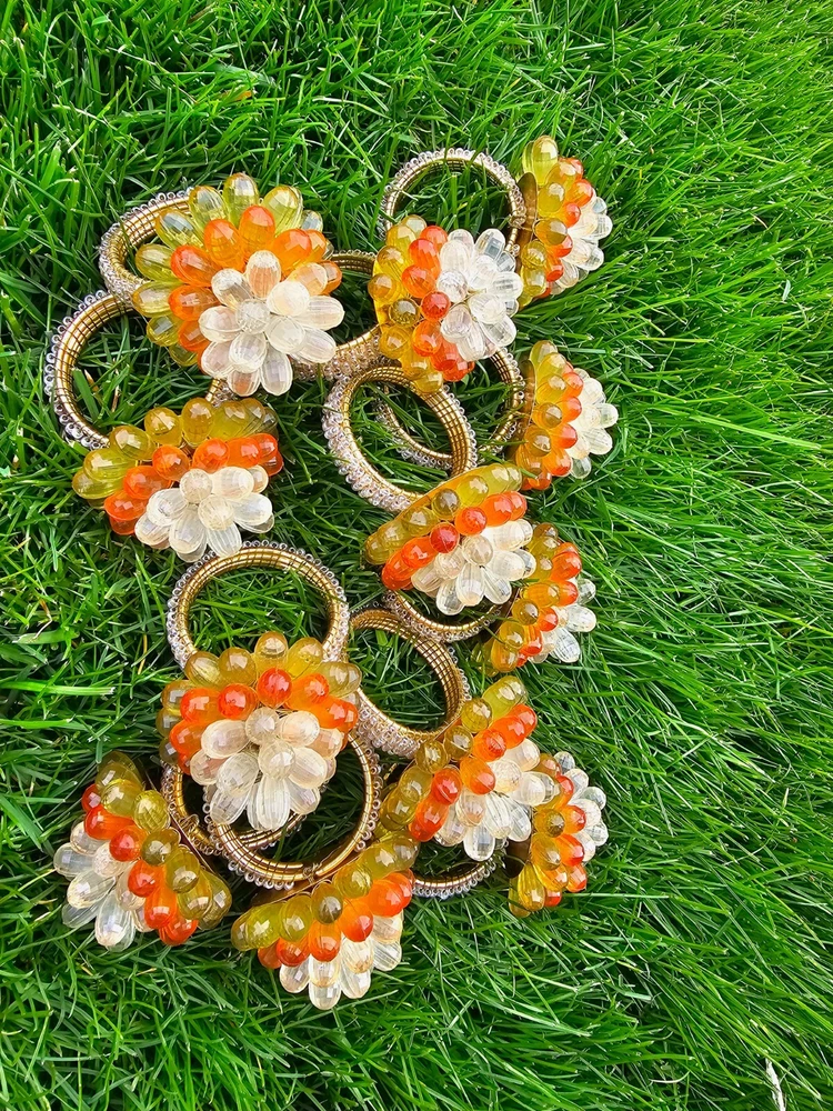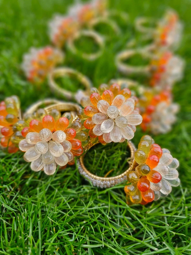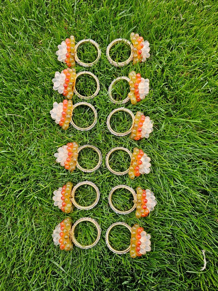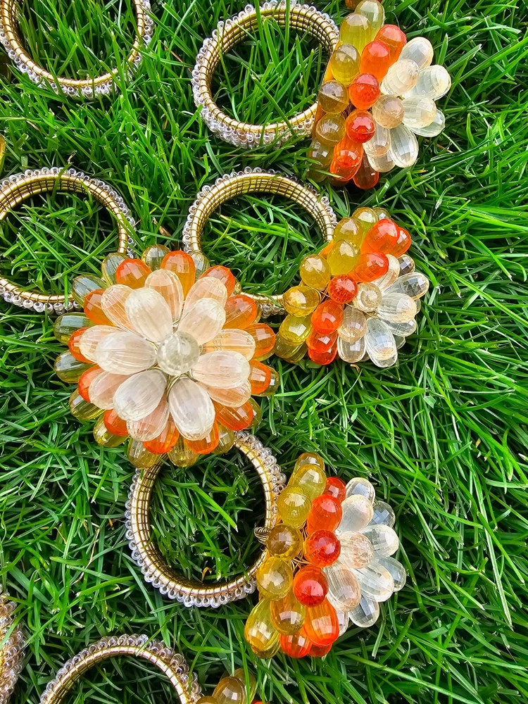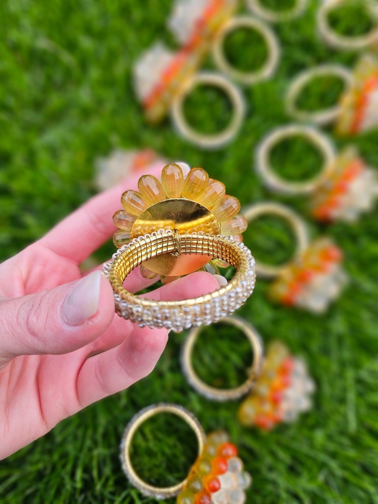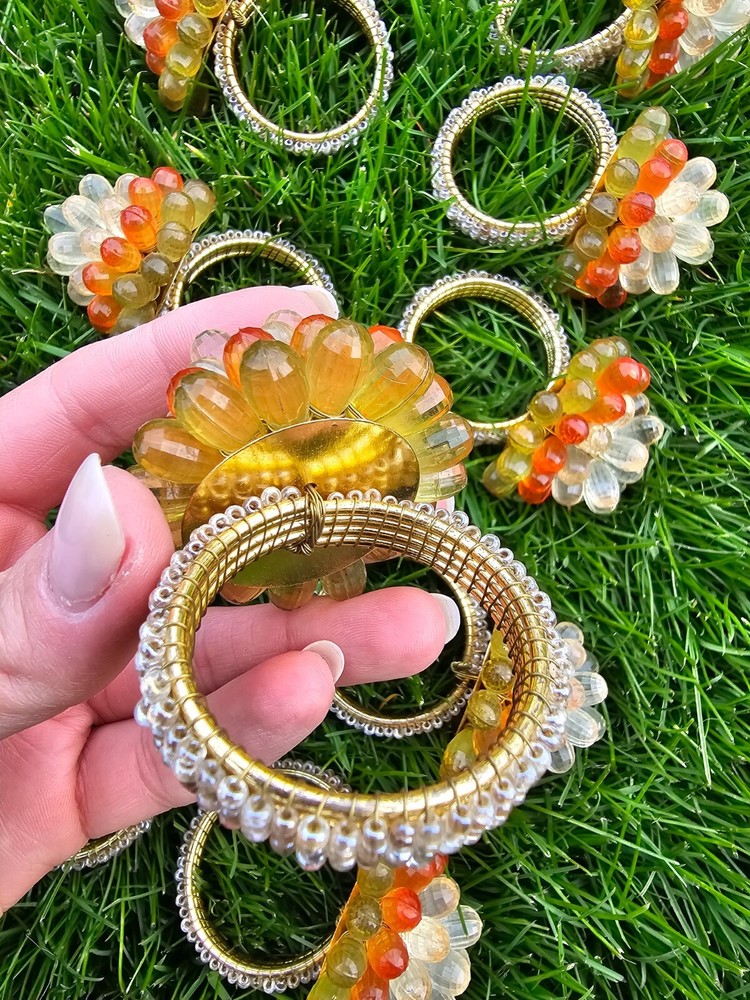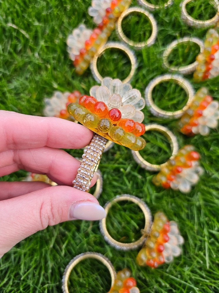 Vintage Mid Century Modern Vibe Orange Yellow Clear Faceted Bead Napkin Rings 12 napkin rings...