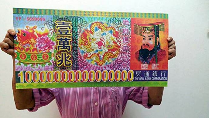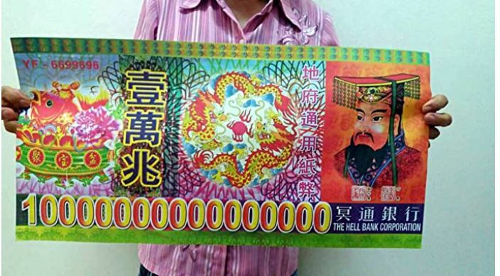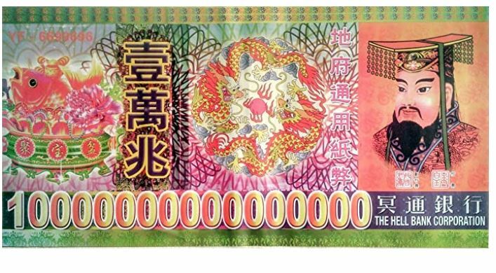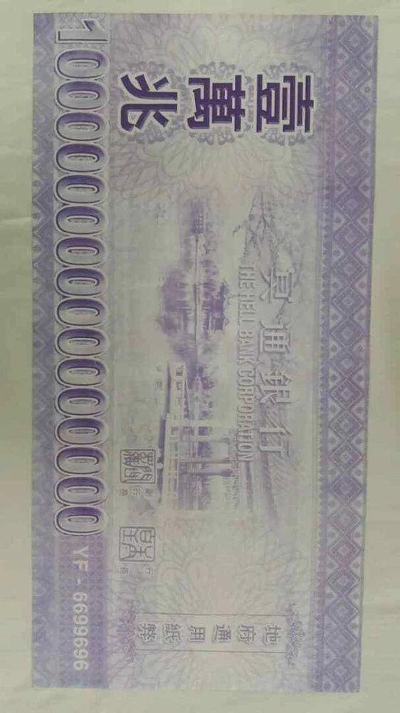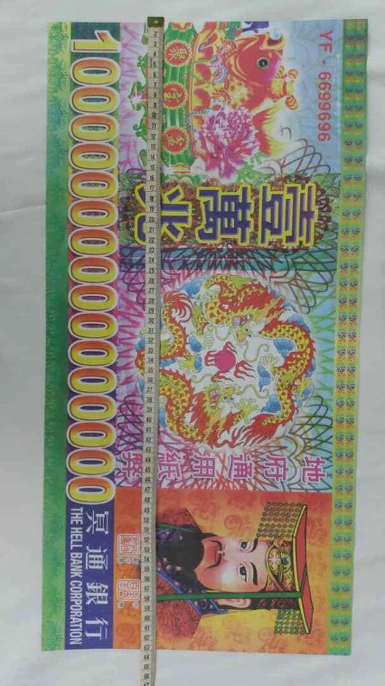 πJoss paper money notes Chinese heaven hell money notes π 1 pack 120 sheets SUPER GIANT HELL NOTE π 10 Quadrillion Ancestor Hell Note π Paper Size: 25 inch x 11.8 inch. this is really huge π T hey are also commonly burned as offerings for ancestors and requests for blessings of prosperity and good fortune. π§‘The notes are used to burn for the 'Hell Gods,' offering them monetary distraction so they will leave mortals at peace. π Suitable use on Funerals, Ancestor Birthdays and Death Anniversaries, Qingming Festival, Hungry Ghost Festival, Daily Life Product Description β Ancestor Money or Joss Paper offering is a beneficial practice for yourself and the ancestors. β When our loved ones transition, they still need things in the afterlife. One of these things is ancestor money to help dissolve debt in this realm and beyond! β Burning Ancestor Money on your altar is a very easy practice that yields phenomenal benefits. You can burn one or more bills everyday, on set days, or whenever you can. β These hell notes feature an image of the Jade Emperor, the presiding monarch of heaven in Taoism. β The notes are used to burn for the βHell Gods,β offering them monetary distraction so they will leave mortals at peace. β They are also commonly burned in Asia as offerings for ancestors and requests for blessings of prosperity and good fortune.
