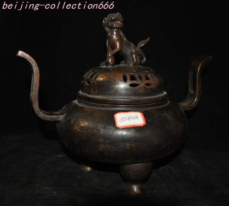 Here is an 12.4'' bronze animal lion foo dog Handle burn incense joss sticks burner censer , As you can see the image, It is in good condition, and was created by skilled craftsmen in traditional style with fine handcrafts . This is a great piece of valuable collection, a valuable personal alter or a very good present. the handwork is very fine with incredible detailing. Don't miss out this chance to get it .Wish you good lucky! Size: Height : 10.4 inch .Long:12.4 inch . Width:7.6 inch Size: Height:26 cm .Long:31 cm . Width:19 cm Weight: 3.2 K G ----included the weight of packing materials Materials: bronze Condition: Good condition Origin: China Shipping cost by Air Mail EMS (7--15 days ) : $Free D.C.E 4&xh we only accept pay pal if you have any problems on payment,please inform us via e bay message . 1.We ship regularly Monday to Saturday (Beijing Time) and will ship your items within 1-2 days upon payment received. If we can not ship your item on time for some special reason, we will inform you via e bay message. 2.We are not responsible for nor can we offer any specific adv ices on import fees, duty, customs, VAT or taxes that you may have to pay when your order arrives. 3.We ship the items according to your Pay pal address except the special notes from buyers! Be sure that your Pay pal address is correct when you buy the items in e bay. We do not take responsibility for item loss due to wrong address. 4.Estimated delivery time: Shipping may be influenced by holidays, events and some other uncertainties. If you dislike the seemingly long shipping time, please think carefully to bid or buy the item. We do not want to get a negative or neutral or low D SR score because of shipping time. If you have special demand on shipping time, please inform me via e bay message. We want to give you a happy shopping experience, when you are not satisfied with our products, please contact us on E BAY, we are responsible seller, we will solve your problem, please believe us,thanks! If you're in any way dissatisfied with your purchase, let me know through "MY MESSAGES" or "Ask Seller Questions" or our mailbox. We will solve it for you. We are committed to ensuring that you are completely satisfied with every transaction. 100% Satisfaction guaranteed ! We will reply your mail with in 24 hours normally. Sometimes have a little delay due to the weekends or holidays. If you can't get our mail after 48 hours, please check your spam or contact to us via E bay. In addition to contact us through eBay or you can send your message to our mailbox. Any question, please feel free to contact us, we will always do our best to serve you. Business Hours: Mon-Sat 9:00-17:30:00 (Hong Kong Time GMT+8:00)