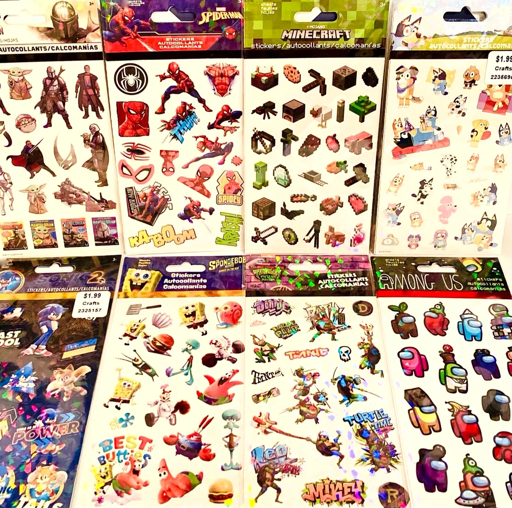 HUGE Mixed Sticker Lot | The Ultimate Kit | Qty. 1299+ Stickers | High Quality Only! Popular Assortment of Puffy, Scrapbook, Cartoons, Bubble, Pop Up, Neon, Metallic, Laser, Glitter and so much more. Stickers For all Ages, Tv - Movie Themes, Marvel, Angry Birds, Paw Patrol, Sponge Bob, Pokemon, Transformers, Minions, and Many More. The Pack will include 1299+ Stickers overall! I have included a large variety of pictures of the assortment available. The pictures give you an idea of what you will be receiving. Please Note: You will not receive everything pictured. Please contact me with any special requests. This HUGE Variety of fun designs stickers can be used in parties, classroom, school and home, good for reward for students, potty training, adding inside a birthday card, game activities, entertaining toddlers, etc. Perfect Gifts for Kids & all Occasions: Can be given as a gift for kids, girls, boys, toddlers, teens, students, friends, and classmates, they will love it!