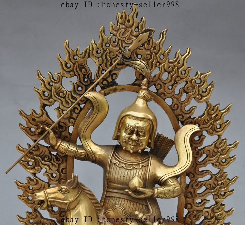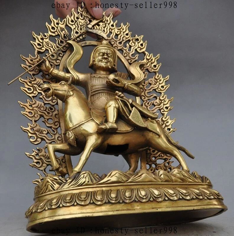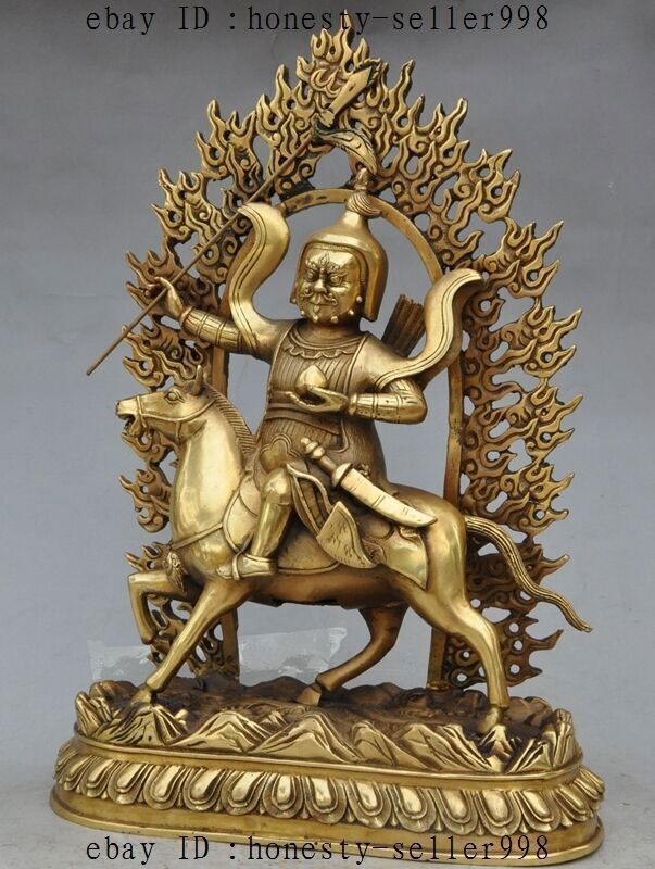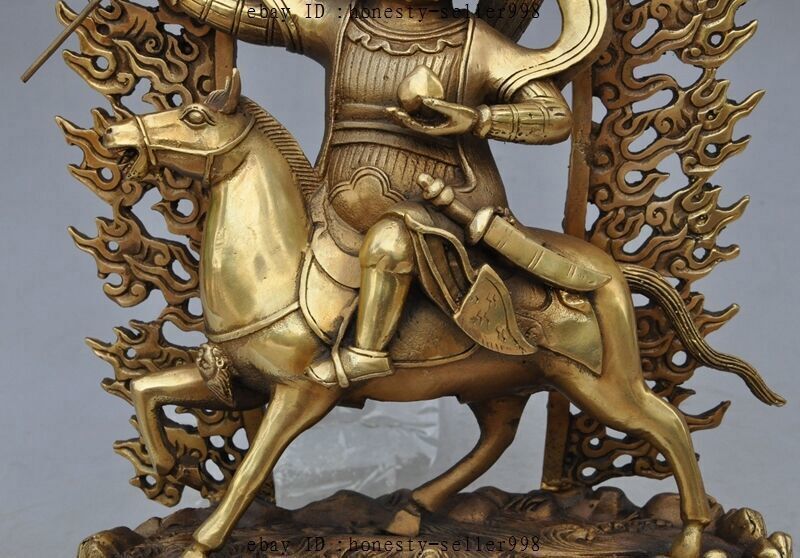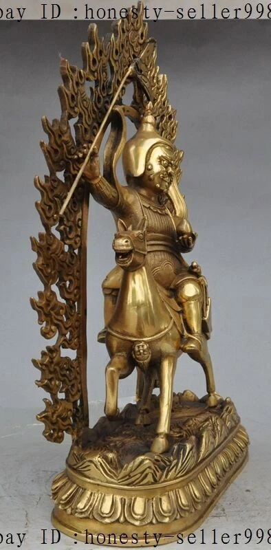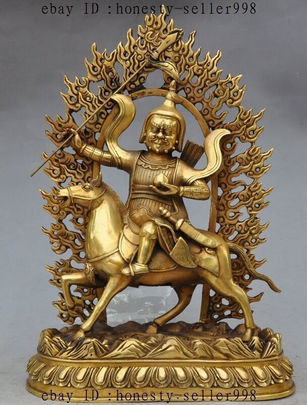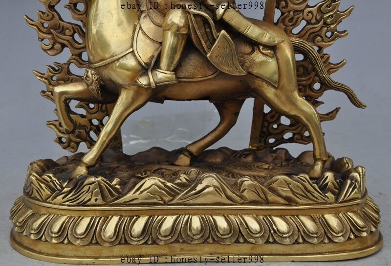13"Tibet Buddhism Bronze Joss Palden Lhamo Protection Deity Ride Horse Statue Product Description Size: Height : 13.38 inch .Long : 9.05 inch . breadth :3.93 inch Size: Height :34 CM .Long : 23 CM . breadth :10 CM Weight: 3.5 KG----included the weight of packing materials Materials: brass Condition: Good condition Origin: China Payment Delivery details Terms of sales About us Contact us Payment Only accept Paypal Delivery details We will ship out your item within 7 day through Airmail after the payment was cleared. Normally it expects 10 to 25 days to get to worldwide destinations. It needs 1-2 weeks to Japan, 2-4 weeks to Europe,Australia and USA . We ship worldwide . Terms of sales If you have any problem,please send me message first,we'll do our best to resolve the problem! Satisfied with our service,Please give me a 5 star positive feedback,then I will give you a 5 star feedback too! If you are unhappy with the item or our service,please send me message before leave feedback,just give me a chance,thank you! About us When you receive the items,if you don't like,we accept return and refund,but the buyyer should pay for the shipping cost. If something goes wrong,or you don't want the items,please send me message before leave feedback,thank you! Contact us If you have any questions about this item, please send me message before you bid. We will be very happy to answer any questions you may have. Please feel free to send me message if you have any question about the items. Most message will be answered in 12 hours .