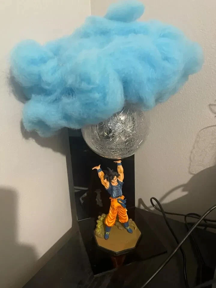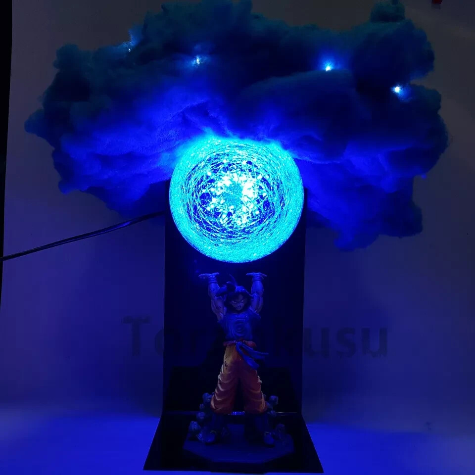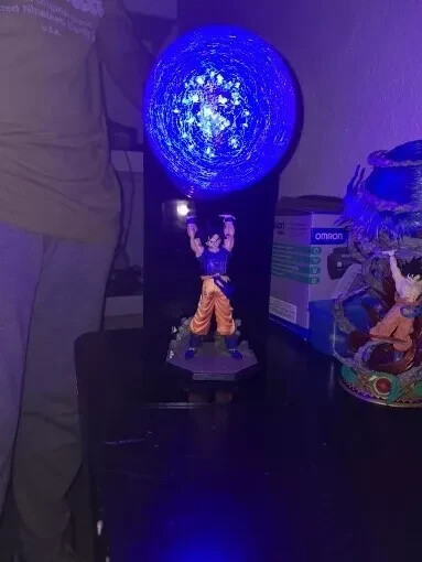 The product is a 14" LED lamp featuring the character Gokou (Goku) from the popular anime franchise Dragon Ball Z. The lamp is designed in the shape of Gokou performing the Genki Bomb attack. Manufactured in 2015 in China, the lamp is made of plastic and is multicolored. It is a generic brand item associated with the Anime & Manga theme, particularly catering to fans of the Dragon Ball series. The lamp is a collectible piece that would appeal to enthusiasts of animation art and merchandise.