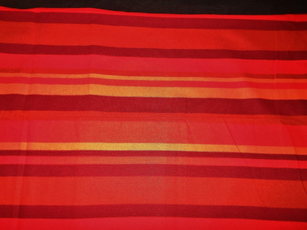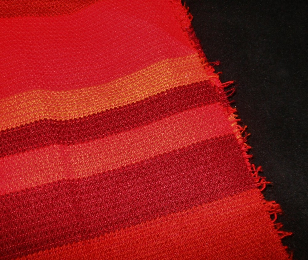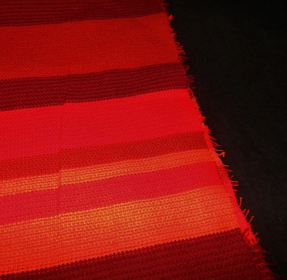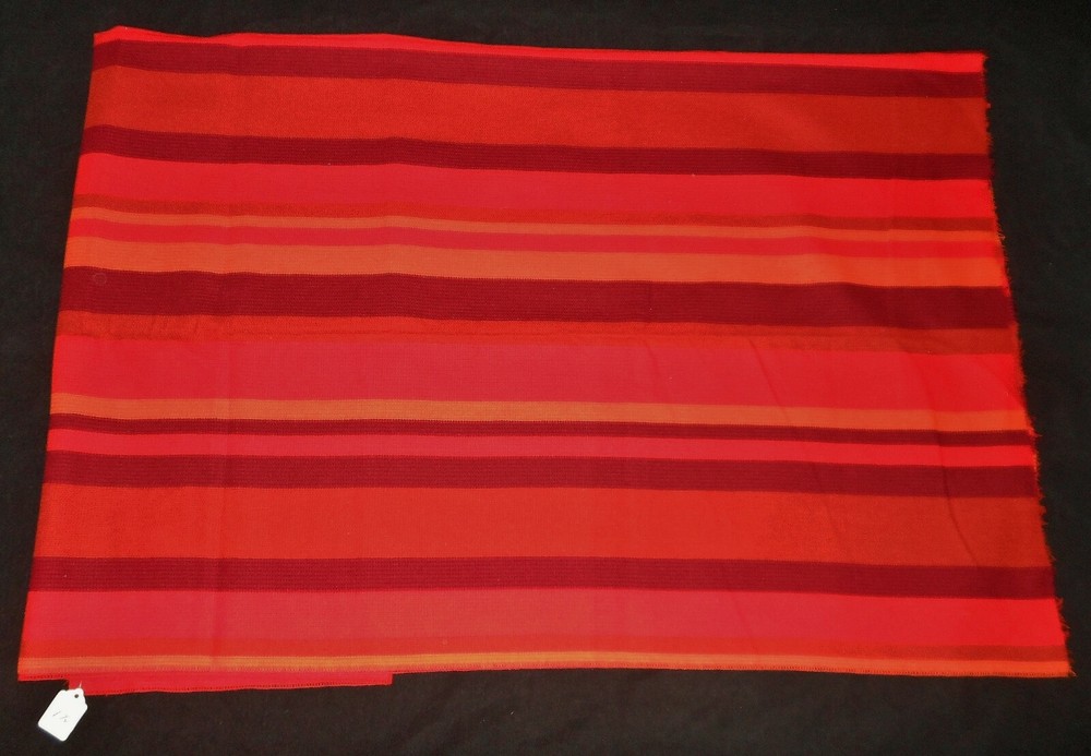 ~ Up For Grabs ~ Is This Vintage Striped Woven Acrylic Blend Fabric Mid Century Bold Striped Pattern In Red's, Orange's, Maroon & Pink Medium Weight High Quality Soft Woven Fabric Unsure of Exact Fabric Make Possibly Acrylic Wool Blend? 1.6 Yards (61" x 50") Condition: Minty Mid Century Condition...No Condition Issues...Perfect For Your Country Project! Shipping Charges Determined By Buyers Location...I Ship 3x Weekly & Will Ship Worldwide To Confirmed Addresses Only Please. Thanks For Looking!