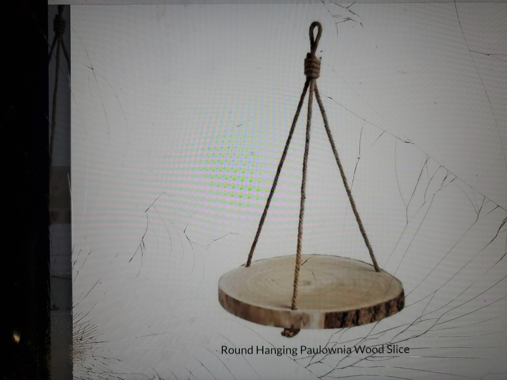 5M 16 inch Round Paulownia Hanging Wood Slice creative coop co-op da7470 table.... ants, figurines or decorative objects can be placed on this wood slice. Hang it from a wall hook or ceiling for an extra space to display your treasured items. It can also be hung next to a bed or couch for added space to keep remotes, kleenex or pen & paper. (Each One Will Vary) 16.0 x 16.0 x 1.3