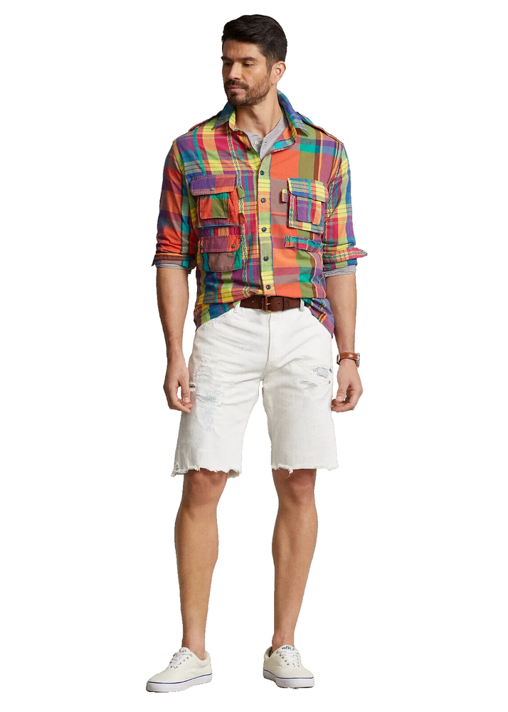 5704-196206934673 $168 Polo Ralph Lauren Men's,Sullivan Slim Distressed Cutoff Denim Short,Blue,34 ABOUT THE BRAND Since the beginning, the Bloomingdale's brothers sought ways to offer something more to customers—and with The Men's Store at Bloomingdale's collection, you'll find that "something more." Featuring thoughtfully designed cashmere sweaters, casualwear, office-ready looks, shoes, and accessories, The Men's Store at Bloomingdale's delivers an intuitively curated collection of menswear that's versatile, elevated, and of the moment. FEATURES Belt loops. Zip fly with a buttoned closure. Five-pocket styling with signature metal rivets. Cutoff hems. Foil-print “Polo Ralph Lauren” patch at the back right waist. Cotton. Machine washable. Imported.