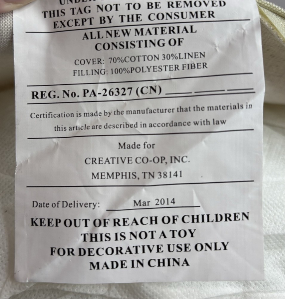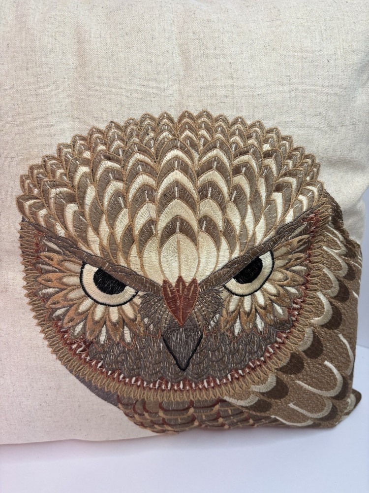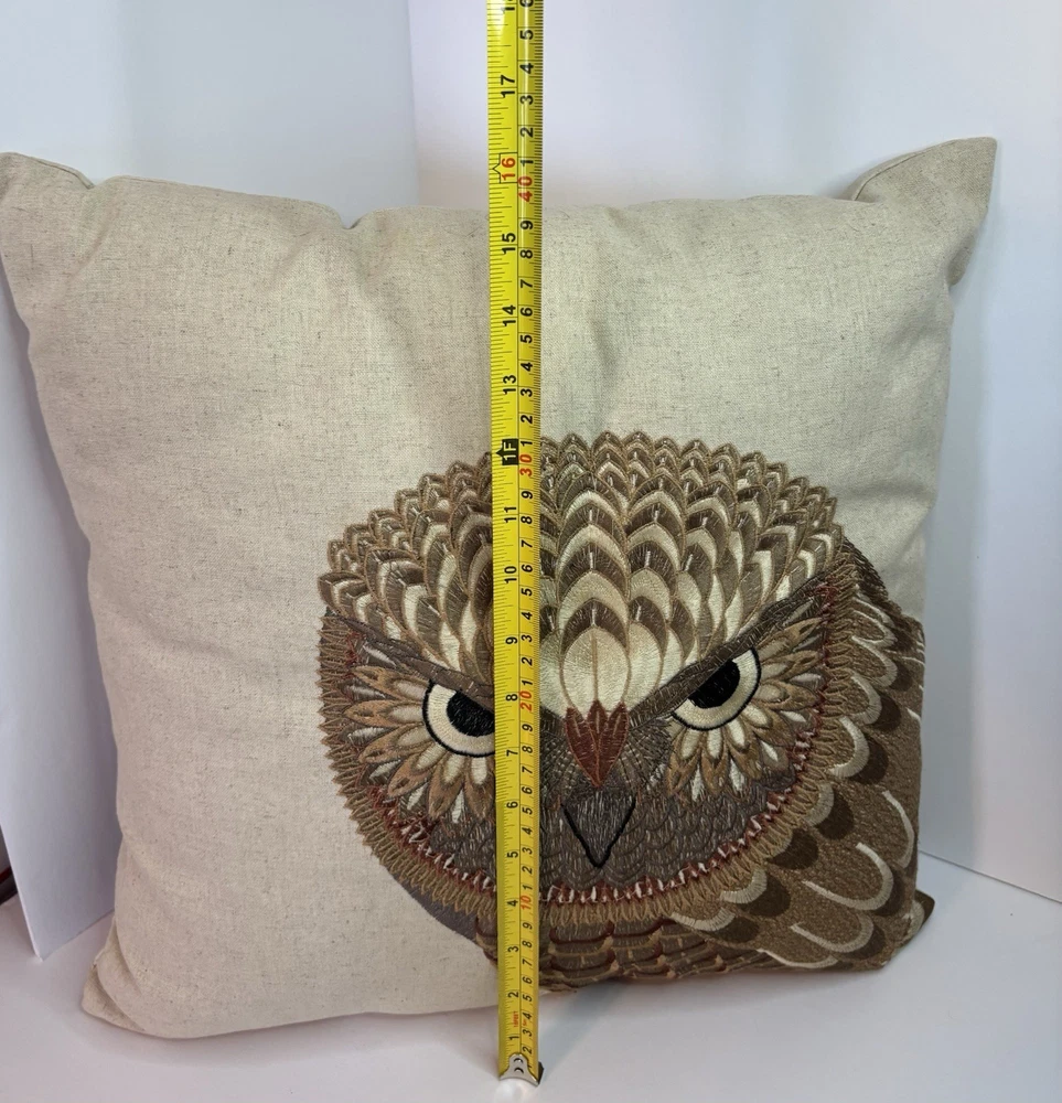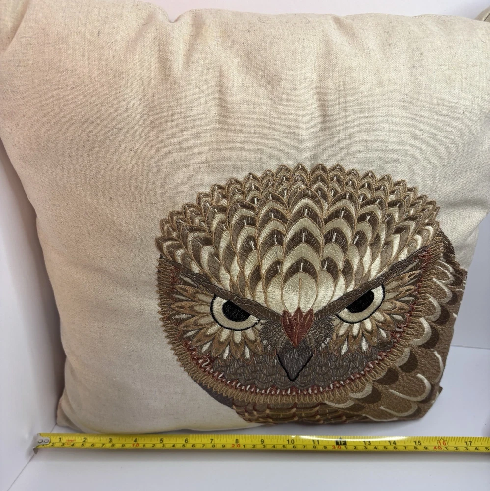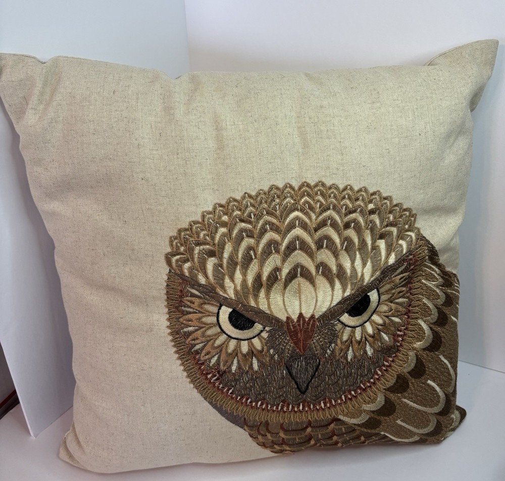 THIS IS A NICE 17" THROW PILLOW BY CREATIVE CO-OP. THE COVER IS MADE OF 70% COTTON AND 30% LINEN. HAS A BEAUTIFUL OWL EMBROIDERED ON THE FRONT. ZIP CLOSURE. IN VERY GOOD TO EXCELLENT PRE-OWNED CONDITION. NO STAINS, HOLES, BAD ODORS... PLEASE SEE PHOTOS FOR DETAILS. THANK YOU FOR TAKING THE TIME TO LOOK AT OUR ITEM. IF YOU DECIDE TO PURCHASE, PLEASE MAKE SURE THAT YOUR CONFIRMED ADDRESS ON YOUR E-BAY ACCOUNT IS CORRECT. I WILL NOT TAKE RESPONSIBILITY FOR PACKAGES SENT TO THE WRONG ADDRESS. IF YOU HAVE MOVED PLEASE TAKE THE TIME TO CHANGE YOUR ADDRESS ON YOUR E-BAY ACCOUNT ! WE CAN NOT SHIP TO A DIFFERENT ADDRESS THAN WHAT IS PROVIDED. FEEL FREE TO E-MAIL US WITH ANY QUESTIONS YOU MAY HAVE. PLEASE CONTACT ME WITH PAYMENT PLANS WITHIN 24 HOURS OF AUCTION END. PLEASE ASK ALL QUESTIONS BEFORE BIDDING OR USING BUY IT NOW! PLEASE DO NOT ASK FOR CHANGES AFTER YOU HAVE BID OR USED BUY IT NOW! WE DO NOT INTEND TO MAKE MONEY ON SHIPPING COSTS, WE CAN NOT CONTROL THE COST HOWEVER. LARGE ITEMS COST MORE TO SHIP AND TO PACK. SHIPPING MATERIALS ARE VERY EXPENSIVE. SOMETIMES WE HAVE TO BUY SPECIAL BOXES AND SHIPPING SUPPLIES FOR A CERTAIN ITEM. PLEASE DO NOT E-MAIL ME AND ASK ME TO LOWER THE SHIPPING COSTS. I LIVE IN OHIO, SO THE FURTHER YOU LIVE FROM ME, THE HIGHER THE SHIPPING COSTS. IF YOU HAVE A PROBLEM WITH YOUR ITEM PLEASE CONTACT ME BEFORE LEAVING NEGATIVE FEEDBACK. I WILL DO WHAT I CAN TO MAKE THE SITUATION RIGHT. I WANT YOU TO BE HAPPY. IF YOU ARE HAPPY, PLEASE LEAVE FIVE STAR RATINGS, THIS IS HOW E-BAY RATES US. BID WITH CONFIDENCE, WE HAVE BEEN BUYING AND SELLING ON E-BAY SINCE INCEPTION.