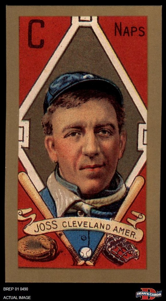1911 T205 Reprint #99 Addie Joss Indians HALL-OF-FAME 8 - NM/MT If the scan in the listing says ACTUAL IMAGE, you will receive the card pictured. For cards issued after 1983, we will often use representative images and you will not receive the exact card pictured. Shipping Policy You only pay shipping on the first item. If you order multiple items on the same order, you will only be charged once for shipping. We do not combine shipping on multiple orders. To avoid multiple shipping charges we recommend using eBay's "Add to Cart" feature to check out multiple items in one transaction, or please request and allow for us to send an invoice to reflect the combined shipping charges. Canadian customers - We send all of our Canadian/International packages with tracking and cannot make any exceptions to this policy. Negotiating Prices All prices are final and we do not negotiate. This policy is to ensure that everyone knows that they are getting our best possible price. So please do not ask us to negotiate on price. Return Policy Dean's Cards has a 100% Money Back Satisfaction Guarantee on all purchases, as long as the product is returned within 30 days of receiving the product. Card Grading Each card is first reviewed by a member of our team, in order to detect any flaws that may not be visible on a scan, such as wrinkles, creases, print spots, or light stains. The vast majority of our vintage cards are professionally graded by the Dean's Cards Grading Software and include a 100% satisfaction guarantee. Our grading is on par with PSA standards when it comes to corners, centering and flaws - and tends to grade a bit tougher than PSA, on cards with a tilted image or rough edges. This grading software was developed to provide far better grading and consistency than can be achieved using the human eye. Determining the card's grade The sharpness of the corners and the degree to which a card was cut off-center determines the maximum possible grade that the card can receive. The card's grade is further reduced by any flaws or blemishes that it may have. Each card is evaluated on the following characteristics and assigned a score. Corners - Each corner of a card is individually analyzed, and then assigned a score on how square, sharp, and flawless it appears. Centering - The borders are measured, at multiple points along the edge, to determine the horizontal and vertical centering and tilt. Defects - The card is examined for imperfections, such as: size, print flaws, dings, stains, creases, or other wear which could lower its grade. Bonus for Perfect Centering - A vintage card, with near perfect centering, is given a one-half grade bonus. So when you buy one of our cards with a half-grade (e.g. 3.5 or 6.5) it will appear perfectly centered, both vertically and horizontally. Grading Criteria Worst Corner - A card can grade only as high as the worst corner will allow. Average Corner Tilt - The difference in width of a card border near the top, compared to the bottom. OCT - The sum of how far a card is Off-Center, plus its Tilt. Minimum Centering Requirements Eye Appeal - The combination of a card's centering, corners and tilt. Well-Centered - Cards that appear perfectly centered receive a bonus of one-half grade. Flaws, defects and other imperfections - can lower a card's grade. Card Backs - the above criteria is also considered, for the back of the cards, but does not inflict as severe of a penalty to its grade. Packaging Once scanned, the cards are placed in "soft" sleeves, which have an open top for easy removal. The Dean's Cards label is placed on the top back of the card sleeve. Every card you buy features a QR Code that you can scan to see your ACTUAL CARD and its grading statistics. Please note that when images are enlarged there may be instances of vertical lines running through the scans. This was caused by a "dust speck" on the scanner and can be verified by the vertical lines running into the black margins on the top and bottom of the image. About Dean and Dean's Cards Dean's Cards Makes Card Collecting - Fast, Easy And Fun. Dean's Cards was founded in 2002 and has become the leading online seller of vintage sports cards and non-sports cards. Our inventory has grown to more than a million vintage cards and we have a staff of 15-20 employees and a 8500 sq. ft. office space in Cincinnati, Ohio.