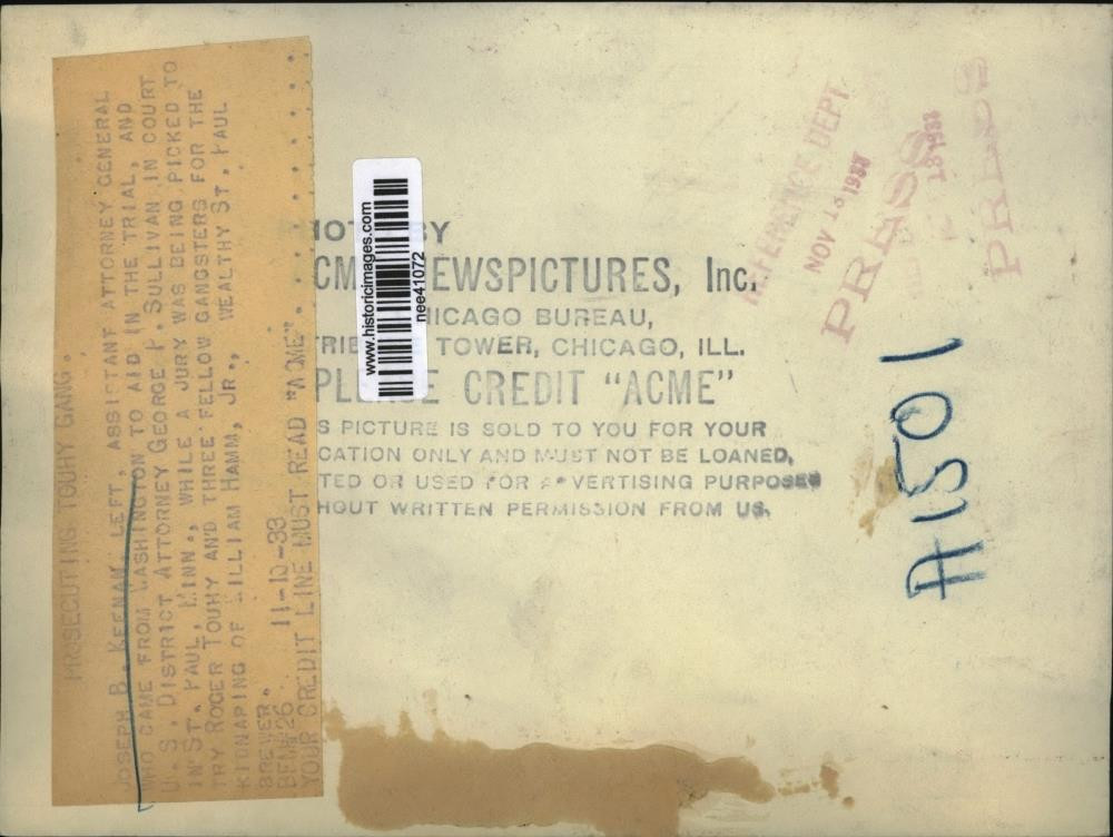 ebay template Note: Please study the images carefully to determine the condition of this vintage photograph, as it may not be in perfect condition. It may contain wrinkles, cracks, and possibly even tears due to its age and how it was handled before it got to us. A scanner may interpret colors and contrast differently than human eyes will, so it is possible that the actual photograph may be slightly darker or lighter in person. This vintage photograph is offered for sale as a collectible item and conveys no transfer of copyright. 1933 Press Photo of Joseph B. Keenan (L) and George P. Sullivan in court for This is an original press photo. 1933 Press Photo of Joseph B. Keenan (L) and George P. Sullivan in court for Roger Touhy trial Photo measures 8 x 6inches. Photo is dated 11-10-1933. PHOTO FRONT PHOTO BACK Historic Images Part Number: nee41072 FAQs Q: Can I just download a digital version instead? A: No, we sell only vintage originals and do not make or distribute any copies, including digital ones. Q: Do you combine shipping and invoices? A: Multiple photos won on the same seller ID combine automatically through the eBay checkout process. If you encounter problems with this, send us a message via eBay messaging and we will send you an invoice. Due to eBay limitations, we cannot combine items won on our different seller IDs for a single shipping charge. Q: How quickly do you ship the items once paid? A: We ship within one business day after your payment clears. If you do not receive an "order shipped" email from us by the close of the second business day from submitting payment, please e-mail us via eBay messaging. Q: How do you make sure my photograph arrives safely? A: We package each order between two cross-corrugated pieces of cardboard to ensure that the package is as difficult to bend as possible. We then wrap each order in a plastic sheet to help protect against moisture. We want you to rest assured that we take every precaution to ensure that the photograph you receive will be in the same condition in your care as it was in ours. Q: Will the "Historic Images" watermark be on my photo when I receive it? A: No. This is a digital watermark we use to protect our images. It is not printed on the photo. Q: What are your office hours? A: eBay for us is a business, and a very fun one to be in! We are open M-F 9 to 5 (CST). Therefore, we do not return e-mails and phone calls over the weekend. We observe the following holidays: New Years Day, Memorial Day, Fourth of July, Labor Day, Thanksgiving and the day after Thanksgiving, Christmas Eve and Christmas Day. Q: Where did all these vintage photos come from? A: These original vintage photographs are from various news service and newspaper photo archives from locations around the country including: Boston, Detroit, Tampa, Chicago, Denver, Seattle, New Orleans, Milwaukee, Portland, Spokane, and more. We do not copy or reproduce any photographs -- every item is a unique vintage piece that was housed in a news archive. Q: Can I use this photograph in my book/blog/website? A: The short answer is no. There is no transfer of copyright for republication or reproduction with these photographs when you purchase them, and only photographs taken before 1923 are currently automatically in the public domain. Permission from the copyright holder, which usually can be identified from the back of each photo, must be sought to republish or reproduce the image for any purpose. Q: Do you relist items (in case I miss an auction ending)? A: Auction items that receive no bids are relisted in our store (historicimages-store on eBay) as a fixed-price item and at a higher price than the starting auction price. Q: Do you leave feedback? A: Yes, we always leave feedback for buyers. Our software monitors when our buyers leave us feedback, then notifies us that we can leave feedback for the buyer. Rest assured, if you leave feedback, we will do the same! Check out our family of eBay IDs: historicimages01 Sports Photos historicimages02 Entertainment Photos historicimages03 Americana Photos historicimages04 International & War Photos historicimages05 Transportation Photos historicimages06 Photos of All Subjects historicimages07 Entertainment Photos historicimages08 Newsworthy Photos historicimages09 Entertainment Photos historicimages10 Sports Photos historicimages-store Our largest fixed-price selection historicimages-gallery Hand-picked photos Saturday night auctions About Us Historic Images was formed in September 2009, with a handful of scanners working out of a basement to digitize newspaper photo archives. We have since moved out of the basement, and we can now archive thousands of photos per day. Our company has worked with magazines and newspapers from Detroit, Boston, Denver, Seattle, Tampa, Chicago, and New Orleans, just to name a few. We are constantly adding to our inventory, and have assembled an archive of millions of photos to date. As our company evolved, we began our eBay business, which brings thousands of fresh auctions per week to the world's largest online auction marketplace. Our custom software systems and team of great employees allow us to efficiently scan and sell large photo archives online. At the very core of our company's DNA is a strong commitment to customer satisfaction and strict integrity for our product. Our promise to you is that we will do everything in our power to provide you a great buying experience. Copyright 2009 - Present, Historic Images, Inc. Sell Smarter with Kyozou. Inventory and Ecommerce Management