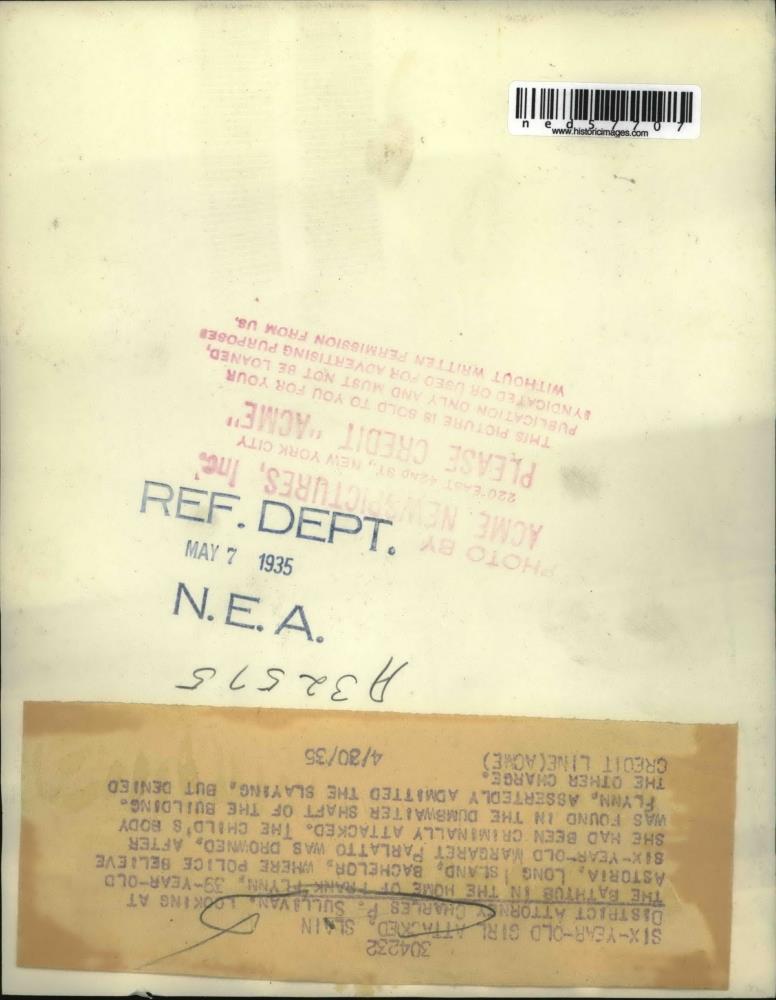 ebay template Note: Please study the images carefully to determine the condition of this vintage photograph, as it may not be in perfect condition. It may contain wrinkles, cracks, and possibly even tears due to its age and how it was handled before it got to us. A scanner may interpret colors and contrast differently than human eyes will, so it is possible that the actual photograph may be slightly darker or lighter in person. This vintage photograph is offered for sale as a collectible item and conveys no transfer of copyright. 1935 Press Photo District attorney Charles P. Sullivan This is an original press photo. He is looking at the bath tub where six year old Margaret Parlatto was drowned after she was criminally attacked by FlynnPhoto measures 7 x 9inches. Photo is dated 5-7-1935. PHOTO FRONT PHOTO BACK Historic Images Part Number: ned57707 Sell Smarter with Kyozou. Inventory and Ecommerce Management