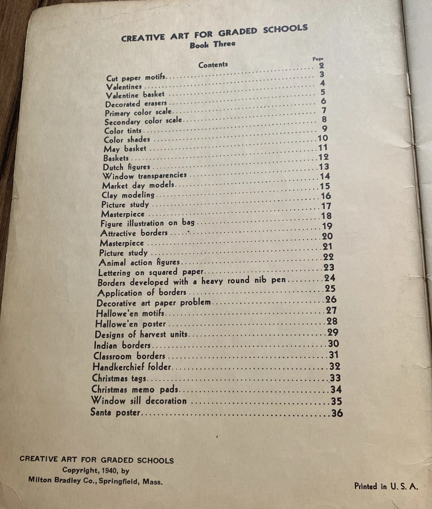 The 1940 Creative Art for Graded Schools Teachers Manual, Book Three is a softcover book published by Milton Bradley Company in Springfield, Massachusetts. Written by Louise D. Tessin, this original book focuses on education and is in English language. Pre owned Original in fair to good condition !! The items may show minor age related wear and/or minor flaws consistent with age and use. ππPlease feel free to email me with any questions you may have regarding this item. Questions Encouraged Before the Sale. I will ship it out promptly to you when payment has been received. ππAll sales are final! ππNot accepting returns at the moment. Thanks for checking it out!