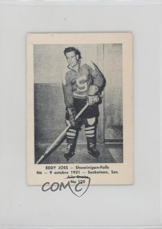 1952-53 Laval Dairy QSHL - [Base] #120 Eddy Joss - Rookie - Ice Hockey Card - Featuring the Shawinigan Cataractes - Featuring Eddy Joss Search for more: 1952-53 Laval Dairy QSHL Search for more: 1952-53 Laval Dairy QSHL - [Base] View all of our Listings Auctions Buy It Now About Us Located in the beautiful Pacific Northwest, COMC (Check Out My Cards) is the world's largest consignment service for trading card singles. More than 10,000 people have used our consignment service to list over 50 million trading cards. Find out how we can help you consign your items on eBay by contacting us through eBay messaging. COMC -- "The Safe & Easy Way to Buy & Sell" Representative Image - Select Specific Item above to see image of actual item Representative Image - Select Specific Item above to see image of actual item Raw Condition for Modern Cards Unless otherwise noted, raw modern cards are listed in Near Mint-Mint condition or better. A NM-MT card appears to be Mint at first glance, but upon closer inspection, may exhibit some of the following: minor print defects (e.g. roller marks, print line, dimple), minor scratches, slight edge wear, and slight corner wear. Centering is clearly visible in the images provided and does not factor into our condition assessment. Raw Condition for Vintage Cards Unless otherwise noted, raw vintage cards are listed in Excellent condition or better. An EX card may exhibit some of the following: minor rounding of corners, surface wear, print defects, light scratches, and slight edge wear/chipping. Centering is clearly visible in the images provided and does not factor into our condition assessment. Domestic Shipping Combined shipping for multiple items is available. To receive combined shipping, please ensure all desired items are in your eBay shopping cart before proceeding to checkout. eBay limits orders to 40 items per order. We automatically combine multiple orders placed on the same day. If you place multiple orders on the same day, please contact us to request a refund of applicable shipping costs. Signature confirmation may be required on invoices over $400. All cards are protected and shipped securely. International Shipping COMC offers eBay's International Shipping (EIS) for international orders under $2,500* (see country exceptions below). All duties and import fees are paid at checkout; in the rare event that there are additional import fees upon delivery, these are borne by the buyer. EIS packages route through a shipping hub in Erlanger, KY before shipping to their final destination. Please note that EIS does not allow for combined shipments. The shipping rates are determined by eBay and cannot be adjusted. *Maximum sale price exceptions: Colombia, Kuwait ($2,000); Taiwan ($1,539); Chile, Costa Rica, Guatemala, Honduras, Trinidad and Tobago ($1,000); Antigua and Barbuda, Aruba, Belize, Dominica, Grenada, Philippines, Saint Kitts and Nevis, Saint Lucia, Montserrat, Turks and Caicos Islands ($500); Dominican Republic, El Salvador ($200). Please request a shipping quote through eBay messaging for orders that exceed the maximum sale price supported by eBay's International Shipping. You will be responsible for all duties and import fees for international orders shipped outside the EIS. All cards are protected and shipped securely. Payment COMC does not accept offers on our cards through our eBay storefront. COMC utilizes eBay’s managed payments system. If you are experiencing difficulties making a payment, please contact eBay for assistance. Return Policy Returns are only accepted on the rare occasion the item is not as described. If you are making a return, please initiate the return process through eBay so a mailing label can be provided for you. Prior to listing, our expert team carefully assessed this item to represent it accurately. Please review the description and high-definition images prior to purchasing to ensure this item meets your satisfaction. We welcome you to contact us if you have further questions about this item. Trust and Integrity COMC carefully assesses each item consigned to us to prevent fraudulent items from entering the marketplace. If you believe an item offered on COMC may be fraudulent, please contact us with details so we can investigate the issue. Items we determine are outside our supported items policy may be removed. Last Modified: 5/13/2025 2:54:41 AM PDT