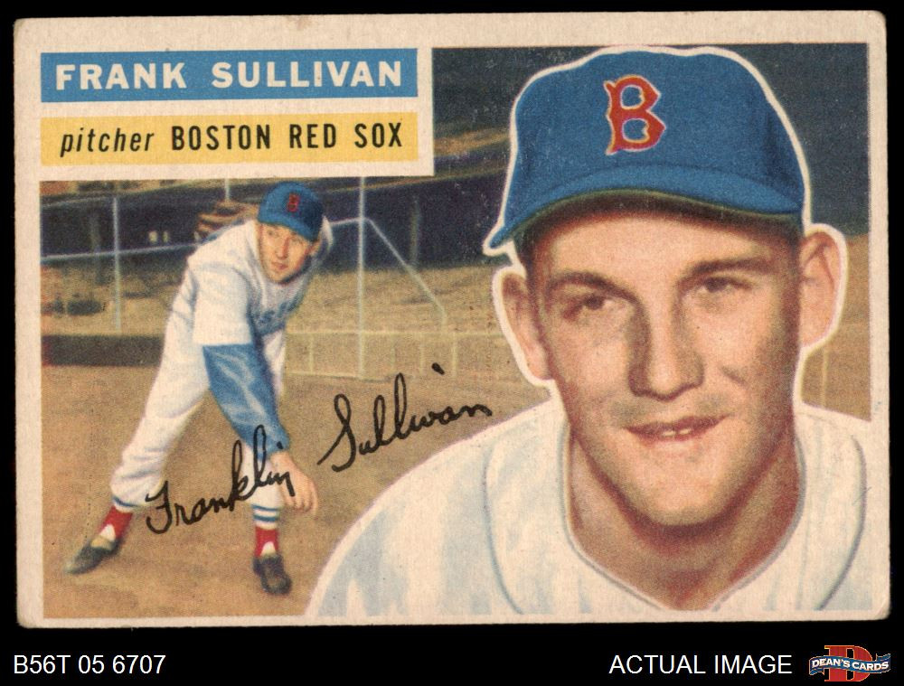 1956 Topps #71 Frank Sullivan Red Sox 2 - GOOD If the scan in the listing says ACTUAL IMAGE, you will receive the card pictured. For cards issued after 1983, we will often use representative images and you will not receive the exact card pictured. Shipping Policy You only pay shipping on the first item. If you order multiple items on the same order, you will only be charged once for shipping. We do not combine shipping on multiple orders. To avoid multiple shipping charges we recommend using eBay's "Add to Cart" feature to check out multiple items in one transaction, or please request and allow for us to send an invoice to reflect the combined shipping charges. Canadian customers - We send all of our Canadian/International packages with tracking and cannot make any exceptions to this policy. Negotiating Prices All prices are final and we do not negotiate. This policy is to ensure that everyone knows that they are getting our best possible price. So please do not ask us to negotiate on price. Return Policy Dean's Cards has a 100% Money Back Satisfaction Guarantee on all purchases, as long as the product is returned within 30 days of receiving the product. Card Grading Each card is first reviewed by a member of our team, in order to detect any flaws that may not be visible on a scan, such as wrinkles, creases, print spots, or light stains. The vast majority of our vintage cards are professionally graded by the Dean's Cards Grading Software and include a 100% satisfaction guarantee. Our grading is on par with PSA standards when it comes to corners, centering and flaws - and tends to grade a bit tougher than PSA, on cards with a tilted image or rough edges. This grading software was developed to provide far better grading and consistency than can be achieved using the human eye. Determining the card's grade The sharpness of the corners and the degree to which a card was cut off-center determines the maximum possible grade that the card can receive. The card's grade is further reduced by any flaws or blemishes that it may have. Each card is evaluated on the following characteristics and assigned a score. Corners - Each corner of a card is individually analyzed, and then assigned a score on how square, sharp, and flawless it appears. Centering - The borders are measured, at multiple points along the edge, to determine the horizontal and vertical centering and tilt. Defects - The card is examined for imperfections, such as: size, print flaws, dings, stains, creases, or other wear which could lower its grade. Bonus for Perfect Centering - A vintage card, with near perfect centering, is given a one-half grade bonus. So when you buy one of our cards with a half-grade (e.g. 3.5 or 6.5) it will appear perfectly centered, both vertically and horizontally. Grading Criteria Worst Corner - A card can grade only as high as the worst corner will allow. Average Corner Tilt - The difference in width of a card border near the top, compared to the bottom. OCT - The sum of how far a card is Off-Center, plus its Tilt. Minimum Centering Requirements Eye Appeal - The combination of a card's centering, corners and tilt. Well-Centered - Cards that appear perfectly centered receive a bonus of one-half grade. Flaws, defects and other imperfections - can lower a card's grade. Card Backs - the above criteria is also considered, for the back of the cards, but does not inflict as severe of a penalty to its grade. Packaging Once scanned, the cards are placed in "soft" sleeves, which have an open top for easy removal. The Dean's Cards label is placed on the top back of the card sleeve. Every card you buy features a QR Code that you can scan to see your ACTUAL CARD and its grading statistics. Please note that when images are enlarged there may be instances of vertical lines running through the scans. This was caused by a "dust speck" on the scanner and can be verified by the vertical lines running into the black margins on the top and bottom of the image. About Dean and Dean's Cards Dean's Cards Makes Card Collecting - Fast, Easy And Fun. Dean's Cards was founded in 2002 and has become the leading online seller of vintage sports cards and non-sports cards. Our inventory has grown to more than a million vintage cards and we have a staff of 15-20 employees and a 8500 sq. ft. office space in Cincinnati, Ohio.