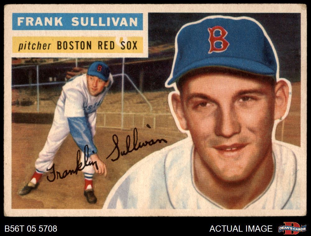 1956 Topps #71 Frank Sullivan Red Sox 2.5 - GD+ If the scan in the listing says ACTUAL IMAGE, you will receive the card pictured. For cards issued after 1983, we will often use representative images and you will not receive the exact card pictured. Shipping Policy You only pay shipping on the first item. If you order multiple items on the same order, you will only be charged once for shipping. We do not combine shipping on multiple orders. To avoid multiple shipping charges we recommend using eBay's "Add to Cart" feature to check out multiple items in one transaction, or please request and allow for us to send an invoice to reflect the combined shipping charges. Canadian customers - We send all of our Canadian/International packages with tracking and cannot make any exceptions to this policy. Negotiating Prices All prices are final and we do not negotiate. This policy is to ensure that everyone knows that they are getting our best possible price. So please do not ask us to negotiate on price. Return Policy Dean's Cards has a 100% Money Back Satisfaction Guarantee on all purchases, as long as the product is returned within 30 days of receiving the product. Card Grading Each card is first reviewed by a member of our team, in order to detect any flaws that may not be visible on a scan, such as wrinkles, creases, print spots, or light stains. The vast majority of our vintage cards are professionally graded by the Dean's Cards Grading Software and include a 100% satisfaction guarantee. Our grading is on par with PSA standards when it comes to corners, centering and flaws - and tends to grade a bit tougher than PSA, on cards with a tilted image or rough edges. This grading software was developed to provide far better grading and consistency than can be achieved using the human eye. Determining the card's grade The sharpness of the corners and the degree to which a card was cut off-center determines the maximum possible grade that the card can receive. The card's grade is further reduced by any flaws or blemishes that it may have. Each card is evaluated on the following characteristics and assigned a score. Corners - Each corner of a card is individually analyzed, and then assigned a score on how square, sharp, and flawless it appears. Centering - The borders are measured, at multiple points along the edge, to determine the horizontal and vertical centering and tilt. Defects - The card is examined for imperfections, such as: size, print flaws, dings, stains, creases, or other wear which could lower its grade. Bonus for Perfect Centering - A vintage card, with near perfect centering, is given a one-half grade bonus. So when you buy one of our cards with a half-grade (e.g. 3.5 or 6.5) it will appear perfectly centered, both vertically and horizontally. Grading Criteria Worst Corner - A card can grade only as high as the worst corner will allow. Average Corner Tilt - The difference in width of a card border near the top, compared to the bottom. OCT - The sum of how far a card is Off-Center, plus its Tilt. Minimum Centering Requirements Eye Appeal - The combination of a card's centering, corners and tilt. Well-Centered - Cards that appear perfectly centered receive a bonus of one-half grade. Flaws, defects and other imperfections - can lower a card's grade. Card Backs - the above criteria is also considered, for the back of the cards, but does not inflict as severe of a penalty to its grade. Packaging Once scanned, the cards are placed in "soft" sleeves, which have an open top for easy removal. The Dean's Cards label is placed on the top back of the card sleeve. Every card you buy features a QR Code that you can scan to see your ACTUAL CARD and its grading statistics. Please note that when images are enlarged there may be instances of vertical lines running through the scans. This was caused by a "dust speck" on the scanner and can be verified by the vertical lines running into the black margins on the top and bottom of the image. About Dean and Dean's Cards Dean's Cards Makes Card Collecting - Fast, Easy And Fun. Dean's Cards was founded in 2002 and has become the leading online seller of vintage sports cards and non-sports cards. Our inventory has grown to more than a million vintage cards and we have a staff of 15-20 employees and a 8500 sq. ft. office space in Cincinnati, Ohio.