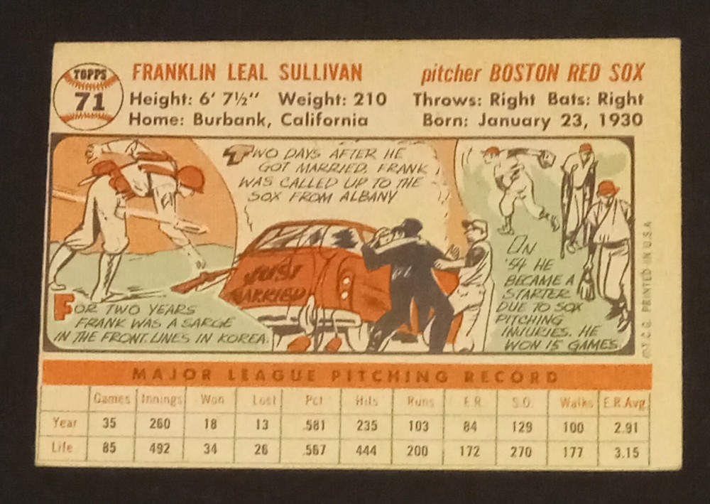 1956 Topps - White Back - #71 Frank Sullivan. No returns. Combined shipping available. Thanks