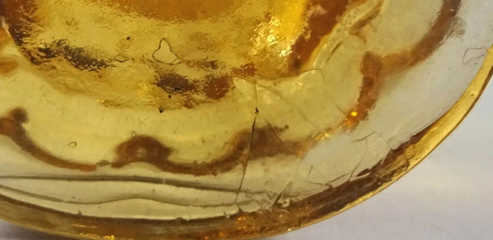 The glass item arrived intact carefully packaged in bubble wrap and densely surrounded by tissue paper. It is exactly as described and shipped out quickly. Great find!