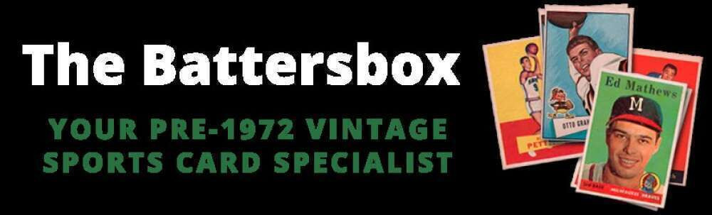 The Battersbox Sportscards We thank you for looking at our eBay Store. We strive to keep a large inventory of Vintage Cards in various grades at Fair Prices for our customers. All of our listings are for the card in the title of the listing only. If there is a mistake in the listing, or you have concerns on why a card received a certain grade, please ask questions so we can clarify the listing. We offer a no questions asked 30 day Return Policy. The Battersbox, Tomball, Texas . Please put all items into your cart before checking out. Shipping fees are not refundable if bought separately. All orders will be shipped with eBay Standard Envelope or USPS First Class. For International shipments, Import duties and taxes are the responsibility of buyer, actual value will be stated on customs forms. Below is a brief synopsis of our Grading Scale: NMMT A truly exceptional card. Centering 60/40 or better with nearly flawless corners. Our Highest Grade. NM+ A near perfect card. Centering is 65/35 or better with one corner with minor wear. Card is in focus and free of print lines. NM/NM+ A grade for Commons only. Card will either be NM or NM+. A true high grade card NM A beautiful card. Centering is 75/25 or better with sharp corners. Could have minor wear on 2 corners. Card is in focus and free of print lines. EXMT+ Very Close to NM. Centering is 75/25 or better. Corners can have minor touches of wear on them, but they still all come to a point. EXMT/EXMT+ A grade for Commons only. Card will be either EXMT or EXMT+. EXMT Still a Nice High Grade Card. Centering is 80/20 or Better. Corners have minor to moderate wear, but are still relatively sharp and card has overall nice appearance. EX+ The Nicest of all the Mid Grade cards. Probably the best deal for the money of all grades. Centering must be 85/15 or Better. Corners can have moderate wear, but no major problems on this grade. EX/EX+ A grade for Commons Only. Card will be either EX or EX+. EX A Solid Mid Grade Card. Centering must be 90/10 or Better. Corners can have moderate wear, but no rounding, creasing or major problems on this card. VGEX The Nicest of the Low Grade cards. Card can't be Mis-cut, but can be off center. The corners can be slightly rounded. No major creases but could have a minor crease, or wrinkle. No intentional damage can be on this Card. VG/VGEX A grade for Commons Only. Card will be either VG or VGEX. Could have a crease, or wrinkle on the card. VG Still a Decent Low Grade card. No intentional Damage on the card. There can be a major crease or multiple small creases, but there is not a crease the destroys the eye appeal of the card. Card can be miscut if otherwise nice. GVG Card can have multiple creases. There can be markings on the front and or back. The card is not destroyed, but has major problems. G (GOOD) There may be back damage, Multiple creasing, markings on the front or back of the card. The card is intact, but by no means an attractive card. F (FAIR) Usually used as a filler card. Card is almost completely worn out. Can have creases throughout, major back damage, including paper loss and markings. P (POOR) The lowest grade we assign a card. This is just to say you have the card. Can have part of the card missing, writing, major creases, etc.. Below is a Glossary of Terms: AS All Star ATG All Time Great BOX Post Cereal Box BT Baseball Thrills CL Checklist CO Coach COR Corrected COM Post Cereal Company DP Double Print ERR Error FBC First Bowman Card FPC First Parkhurst Card FTC First Topps Card F FC First Fleer Card HL Highlights IA In Action KP Kid Photos LL League Leader MG Manager NNOF No Name On Front NNO No Number NT No Tab N TR No Trade P/CO Player/Coach RB Record Breaker RC Rookie Card SP Short Print TC Team Card/Checklist TP Triple Print UER Uncorrected Error U MP Umpire VAR Variation WTab With Tab WL White Letter WS World Series XRC Extended Rookie Card YL Yellow Letter YT Yellow Team This listing created with GLETech Multiple Selling Channel tools.