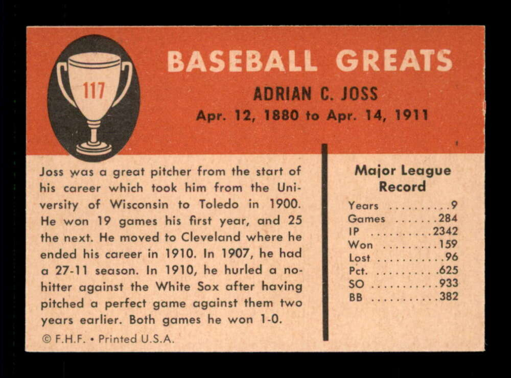 This 1961 Fleer Addie Joss card is a fantastic find! The NM+ condition is impressive, with sharp corners and vibrant colors. The seller, The Battersbox, offers great service, fair pricing, and a hassle-free return policy. Highly recommended for vintage card collectors—definitely worth adding to your collection!