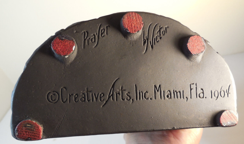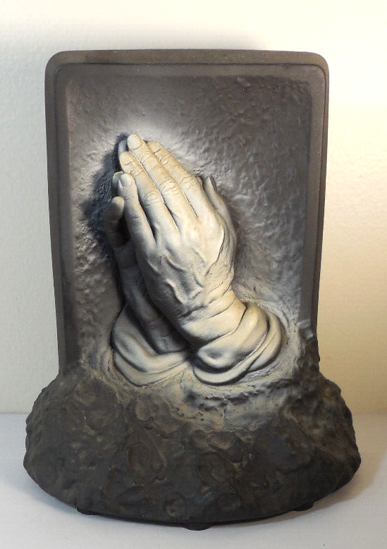 Creative Arts Co. 1964 chalkware Religious free stand 3D Hands in Prayer statue-made in Miami Florida-measures 7" x 6"...