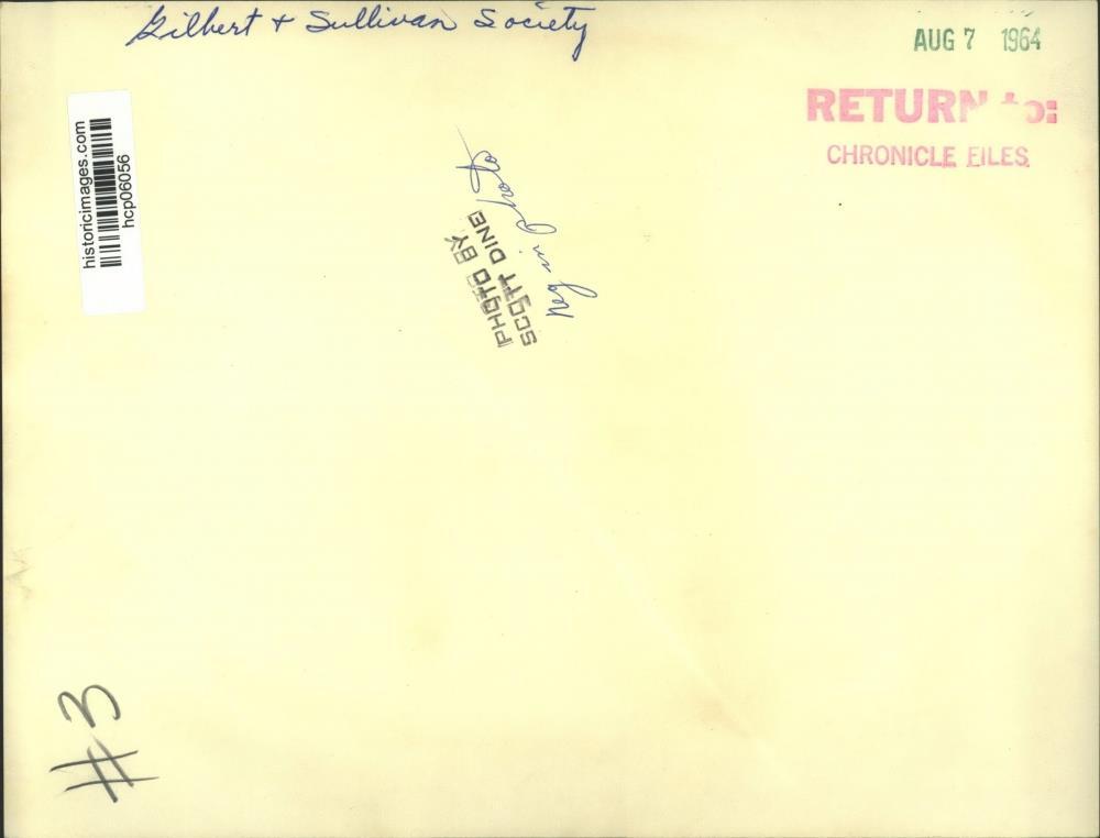 ebay template Note: Please study the images carefully to determine the condition of this vintage photograph, as it may not be in perfect condition. It may contain wrinkles, cracks, and possibly even tears due to its age and how it was handled before it got to us. A scanner may interpret colors and contrast differently than human eyes will, so it is possible that the actual photograph may be slightly darker or lighter in person. This vintage photograph is offered for sale as a collectible item and conveys no transfer of copyright. 1964 Press Photo Member of the Gilbert & Sullivan Society - hcp06056 This is an original press photo. Gilbert & Sullivan Society Photo measures 6.5 x 8.75inches. Photo is dated 8-7-1964. PHOTO FRONT PHOTO BACK Historic Images Part Number: hcp06056 Sell Smarter with Kyozou. Inventory and Ecommerce Management