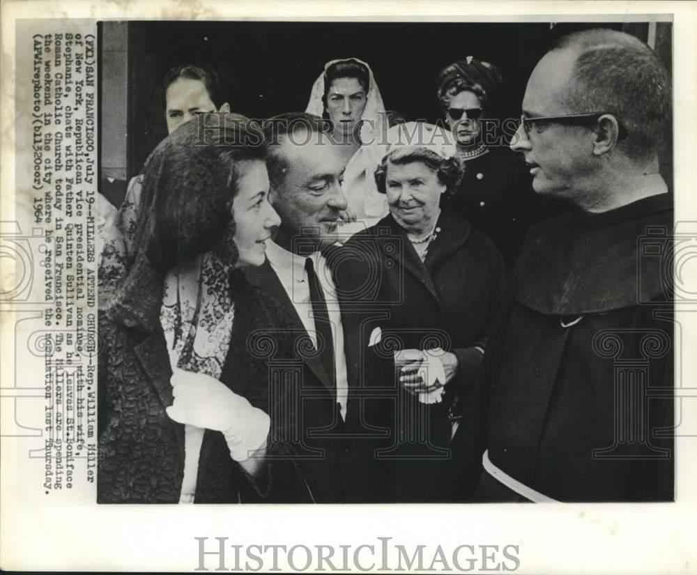 ebay template Note: Please study the images carefully to determine the condition of this vintage photograph, as it may not be in perfect condition. It may contain wrinkles, cracks, and possibly even tears due to its age and how it was handled before it got to us. A scanner may interpret colors and contrast differently than human eyes will, so it is possible that the actual photograph may be slightly darker or lighter in person. This vintage photograph is offered for sale as a collectible item and conveys no transfer of copyright. 1964 Press Photo Vice Presidential nominee William Miller with Father Sullivan This is an original press photo. Representative William Miller of New York, Republican Vice Presidential nominee, with his wife, Stephanie, chats with Father Quinten Sullivan as he leaves St. Boniface Roman Catholic Church today in San Francisco. The Millers are spending the weekend in the city where he received the nomination last Thursday. Photo measures 10 x 8.25inches. Photo is dated 07-19-1964. PHOTO FRONT PHOTO BACK Historic Images Part Number: now27117 Sell Smarter with Kyozou. Inventory and Ecommerce Management