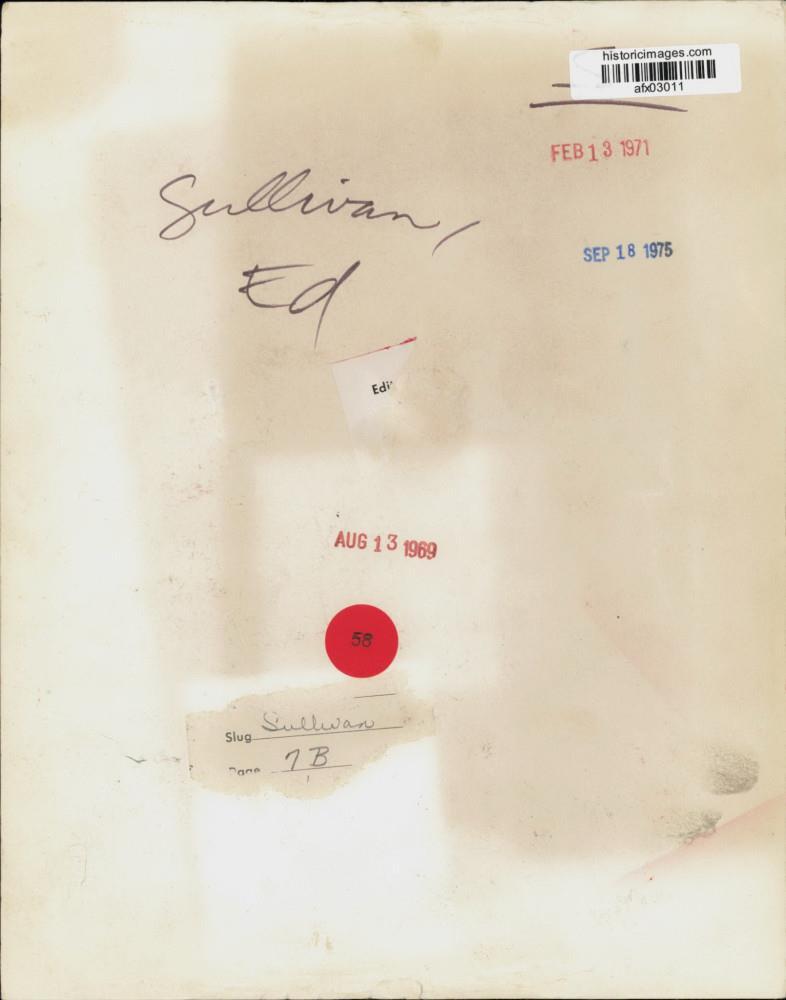 ebay template Note: Please study the images carefully to determine the condition of this vintage photograph, as it may not be in perfect condition. It may contain wrinkles, cracks, and possibly even tears due to its age and how it was handled before it got to us. A scanner may interpret colors and contrast differently than human eyes will, so it is possible that the actual photograph may be slightly darker or lighter in person. This vintage photograph is offered for sale as a collectible item and conveys no transfer of copyright. 1969 Press Photo Famous Sunday Night Television Variety Show Host, Ed Sullivan This is an original press photo. Sullivan, Ed. Television Host. Sullivan.Photo measures 8.25 x 10.25inches. Photo is dated 08-13-1969. PHOTO FRONT PHOTO BACK Historic Images Part Number: afx03011 FAQs Q: Can I just download a digital version instead? A: No, we sell only vintage originals and do not make or distribute any copies, including digital ones. Q: Do you combine shipping and invoices? A: Multiple photos won on the same seller ID combine automatically through the eBay checkout process. If you encounter problems with this, send us a message via eBay messaging and we will send you an invoice. Due to eBay limitations, we cannot combine items won on our different seller IDs for a single shipping charge. Q: How quickly do you ship the items once paid? A: We ship within one business day after your payment clears. If you do not receive an "order shipped" email from us by the close of the second business day from submitting payment, please e-mail us via eBay messaging. Q: How do you make sure my photograph arrives safely? A: We package each order between two cross-corrugated pieces of cardboard to ensure that the package is as difficult to bend as possible. We then wrap each order in a plastic sheet to help protect against moisture. We want you to rest assured that we take every precaution to ensure that the photograph you receive will be in the same condition in your care as it was in ours. Q: Will the "Historic Images" watermark be on my photo when I receive it? A: No. This is a digital watermark we use to protect our images. It is not printed on the photo. Q: What are your office hours? A: eBay for us is a business, and a very fun one to be in! We are open M-F 9 to 5 (CST). Therefore, we do not return e-mails and phone calls over the weekend. We observe the following holidays: New Years Day, Memorial Day, Fourth of July, Labor Day, Thanksgiving and the day after Thanksgiving, Christmas Eve and Christmas Day. Q: Where did all these vintage photos come from? A: These original vintage photographs are from various news service and newspaper photo archives from locations around the country including: Boston, Detroit, Tampa, Chicago, Denver, Seattle, New Orleans, Milwaukee, Portland, Spokane, and more. We do not copy or reproduce any photographs -- every item is a unique vintage piece that was housed in a news archive. Q: Can I use this photograph in my book/blog/website? A: The short answer is no. There is no transfer of copyright for republication or reproduction with these photographs when you purchase them, and only photographs taken before 1923 are currently automatically in the public domain. Permission from the copyright holder, which usually can be identified from the back of each photo, must be sought to republish or reproduce the image for any purpose. Q: Do you relist items (in case I miss an auction ending)? A: Auction items that receive no bids are relisted in our store (historicimages-store on eBay) as a fixed-price item and at a higher price than the starting auction price. Q: Do you leave feedback? A: Yes, we always leave feedback for buyers. Our software monitors when our buyers leave us feedback, then notifies us that we can leave feedback for the buyer. Rest assured, if you leave feedback, we will do the same! Check out our family of eBay IDs: historicimages01 Sports Photos historicimages02 Entertainment Photos historicimages03 Americana Photos historicimages04 International & War Photos historicimages05 Transportation Photos historicimages06 Photos of All Subjects historicimages07 Entertainment Photos historicimages08 Newsworthy Photos historicimages09 Entertainment Photos historicimages10 Sports Photos historicimages-store Our largest fixed-price selection historicimages-gallery Hand-picked photos Saturday night auctions About Us Historic Images was formed in September 2009, with a handful of scanners working out of a basement to digitize newspaper photo archives. We have since moved out of the basement, and we can now archive thousands of photos per day. Our company has worked with magazines and newspapers from Detroit, Boston, Denver, Seattle, Tampa, Chicago, and New Orleans, just to name a few. We are constantly adding to our inventory, and have assembled an archive of millions of photos to date. As our company evolved, we began our eBay business, which brings thousands of fresh auctions per week to the world's largest online auction marketplace. Our custom software systems and team of great employees allow us to efficiently scan and sell large photo archives online. At the very core of our company's DNA is a strong commitment to customer satisfaction and strict integrity for our product. Our promise to you is that we will do everything in our power to provide you a great buying experience. Copyright 2009 - Present, Historic Images, Inc. Sell Smarter with Kyozou. Inventory and Ecommerce Management