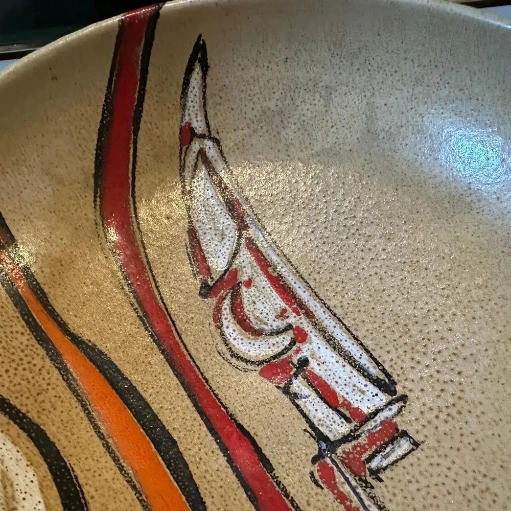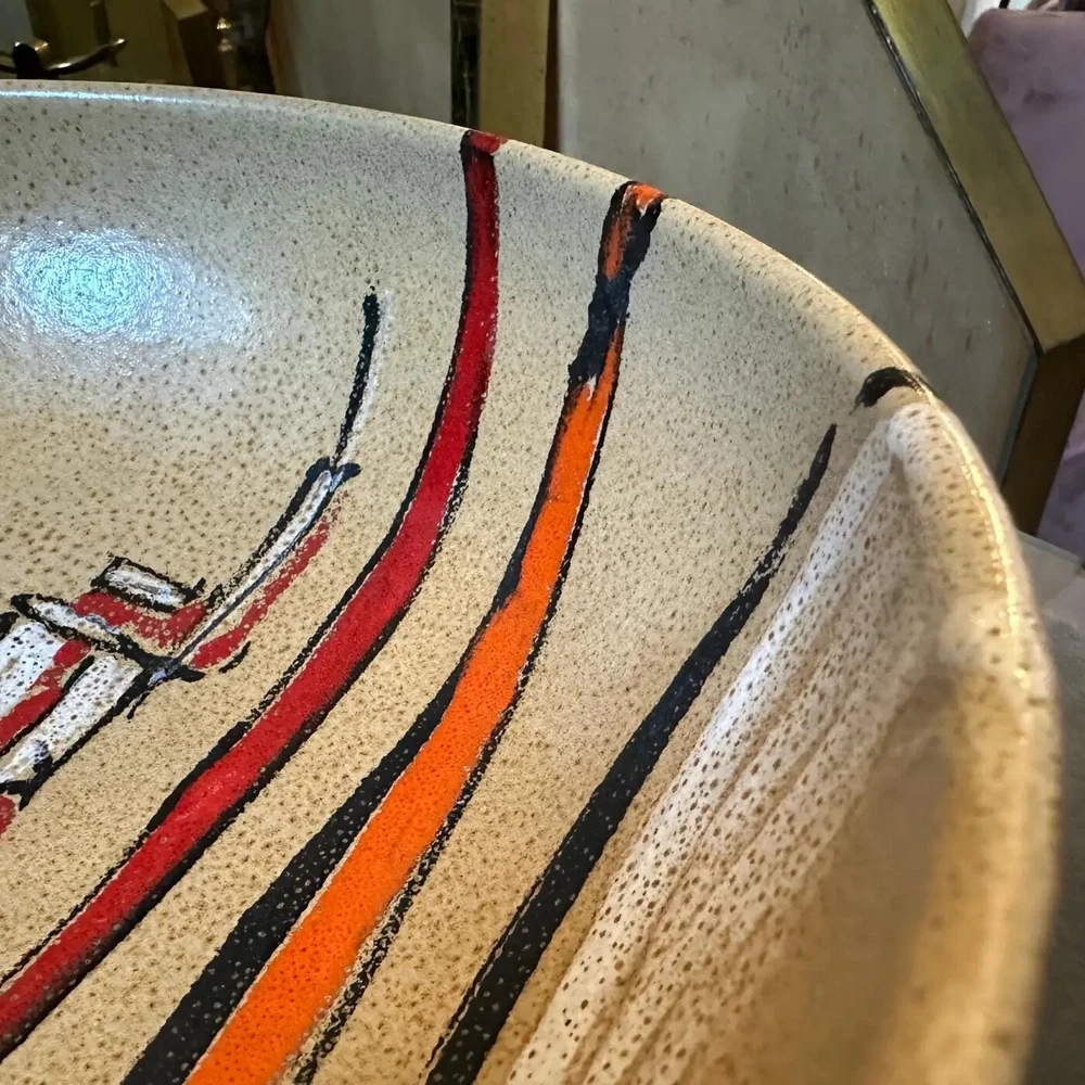 DESCRIPTION At 1970s Brown, Red, Orange and White Ceramic Bowl Designed and Manufactured by Gemi Faenza, It's in Good Condition Overall and Signed on the Bottom. It is a vibrant and artistic piece that reflects the creativity and craftsmanship of it was. The Bowl Has A Classic, Round Shape with gently Sloping Sides, Making It Both Functional and Aesthetically pleasing. The Bowl Features in Warm, Earthy Brown Base Color Color and It is adoard with Abstract Patterns in Red, Orange, and White, Creating A Striking Contrast Against The Brown Background. The Glaze Finish Adds a Glossy Sheen, Which Enhances The Vibrant Colors and Protects The Painted Design. The Hand-Painted Design, with Its Dynamic and Spontaneous Quality Adds to Its Artistic Charm. The Patterns includes Combination of Curved Lines and Geometric Shapes, Giving it in Modern, Artistic Feel. While Primarily Decorative, The Bowl Can Also BE Used For Serving Dry Foods or AS A Fruit Bowl, Its Vibrant Design Makes It A Conversation Piece, Ideal For Adding A Pop of Color To Any Room. Creator: Ceramiche Faenza (Manufacturer) Dimensions: Height: 3.15 in (8 cm) Diameter: 10.24 in (26 cm) Who we are Hi, I'm marco Raino´, administrator of TLC srl. My company is? Specialized in the sale to the wholesale of ancient objects, modernized, hi-fi vintage, antique furniture. So far we have always sold only to shopkeepers, now on Ebay, we also sell to private individuals. We offer you all the guarantees, because we are used to dealing with specialized traders. Hello, I'm marco Raino?, Tlc srl Administrator. My Company is specialized in Ancient and Modern Items wholesale, hi-fi vintage, antique FurniTures. We have only sold to dealers so far, but now, on ebay, we syll to private. We offer all necessary warranties because we are used to dealing with specialized dealers. Conditions of objects The objects are like in the photo. For doubts, do not hesitate to contact me by e-mail or message on eBay. Any imperfections, breakages, defects or signs of the ethical age will always be highlighted in the description also with photos. The description of each object will be as detailed as possible, the era of the object will always be indicated in the most precise way. Items are AS Ayy Sagoar in the picture. For Any Doubt do not hesitate to contact me by Mail or Message on eBay. Any Defects, Cracks or Signns of Age Will Always Be Report in the Description, Even With Photos. The description and the period of each item will be as much as possible accurate. Shipments The packaging will be carried out with the utmost care, using the best materials available. Package Will Be Made Carefully Using the Best Materials Available. Shipment Will Be Done by Express Courier Within 1 Day of Receipt of Payment. Legislation on the right of withdrawal Any refunds of the goods and relative reimbursement are regulated by Italian law on correspondence sales. The customer, if he has purchased a product not complying with his expectations, has 14 days, from the date of delivery of the goods, to exercise the "right of withdrawal", or the possibility of returning the product by communicating its intention by registered letter with return receipt. Privacy protection legislation In compliance with the provisions of Legislative Decree 30 June 2003 n.196, we provide information relating to: Finality and methods for the processing of your personal data Municipalities, scope of communication and dissemination of the same, Nature of the data in our possession Mandatory conferment The data controller The processing of data is carried out exclusively to fulfill the purposes provided for in the purchase and/or sale contract, the after-sales assistance service and for the tax and administrative obligations connected to them. The data will not be communicated or disseminated for any other reason if not for those mentioned above. The provision of data is mandatory for the fulfillment of the contractual obligations as well as the accounting and tax ones connected to them. The owner announces that the possible non -communication or the incorrect communication of one of the mandatory information has as a consequence: the impossibility of the owner to guarantee the congruity of the treatment to the contractual pacts for which the possible failure to correspond to the results of the obligations imposed by tax, administrative and work legislation is carried out will be able to assert its rights as expressed by the articles 7.8 and 9 of Legislative Decree June 30, 2003 n.196, addressing the data controller. Data processing manager: the owner of this account. At 1970s Brown, Red, Orange and White Ceramic Bowl Designed and Manufactured by Gemi Faenza, It's in Good Condition Overall and Signed on the Bottom. It is a vibrant and artistic piece that reflects the creativity and craftsmanship of it was. The Bowl Has A Classic, Round Shape with gently Sloping Sides, Making It Both Functional and Aesthetically pleasing. The Bowl Features in Warm, Earthy Brown Base Color Color and It is adoard with Abstract Patterns in Red, Orange, and White, Creating A Striking Contrast Against The Brown Background. The Glaze Finish Adds a Glossy Sheen, Which Enhances The Vibrant Colors and Protects The Painted Design. The Hand-Painted Design, with Its Dynamic and Spontaneous Quality Adds to Its Artistic Charm. The Patterns includes Combination of Curved Lines and Geom Recommended products Provided by 1970S Venini Style Mid-Century Modern Striped Murano Glass Round Bowl View item 1970S Mid-Century Modern White Murano Glass Round Pendant By La Murrina View item 1970s Mid-century Modern Italian Brass Round Bar Cart View item 1970S Gaetano Sciolari Mid-Century Modern Chandelier By Stilkronen View item 1970S Mid-Century Modern Lucite And Brass Italian Round Tray View item 1970S Mid-Century Modern Fake Tortoise Shell Lucite Round Jewelry Box View item 1970S Mid-Century Modern Bamboo Italian Oval Wall Mirror By Bonacina View item 1970s 
