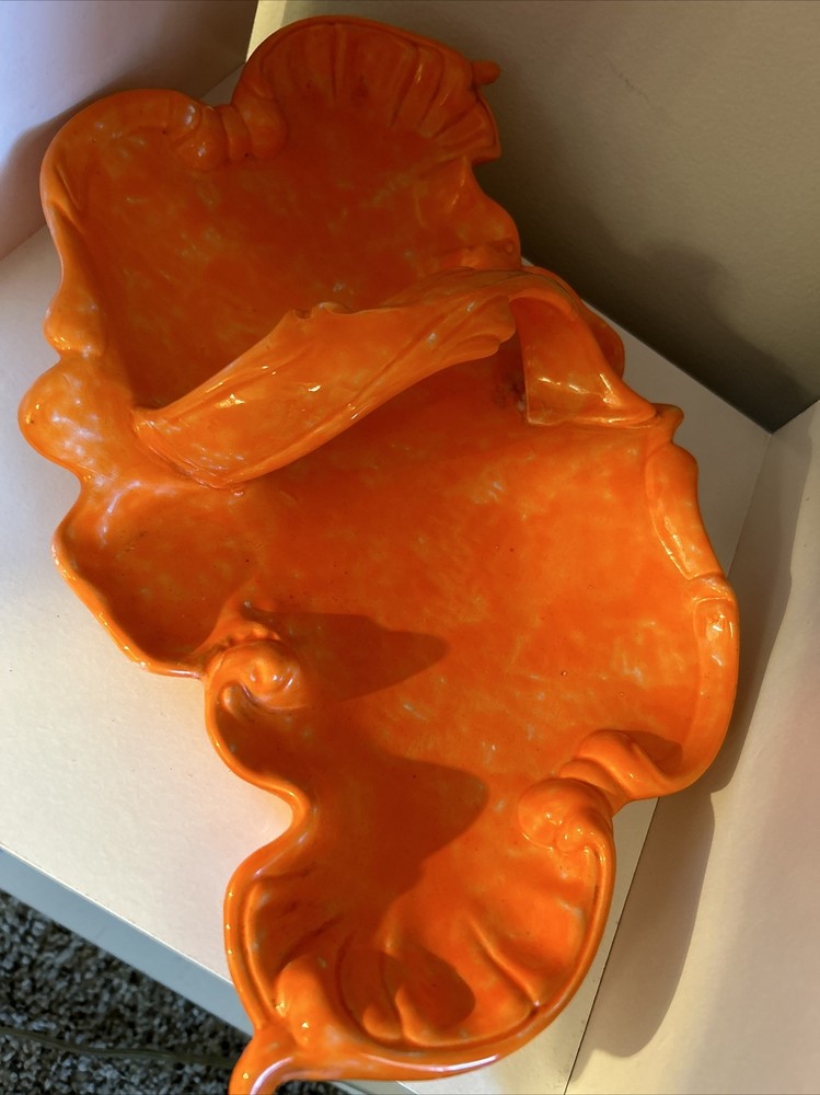 1970's Dish Mid Century Modern Orange Pottery 12” x 7”...