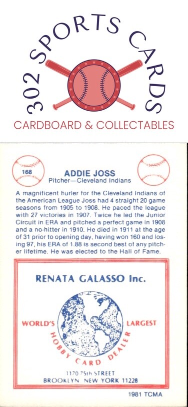This is a nice example of a 1977-84 Galasso Glossy Greats #168 Addie Joss Other important information about this card: In 1977 Addie Joss played for the Cleveland Indians. Please check out our other listings for more great cards.