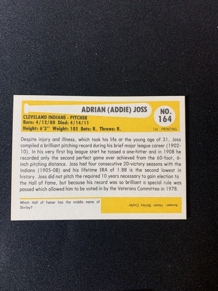 1980-87 SSPC Baseball Immortals - #164 Addie Joss (RC)....
