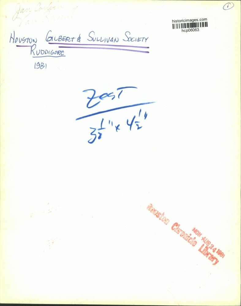 ebay template Note: Please study the images carefully to determine the condition of this vintage photograph, as it may not be in perfect condition. It may contain wrinkles, cracks, and possibly even tears due to its age and how it was handled before it got to us. A scanner may interpret colors and contrast differently than human eyes will, so it is possible that the actual photograph may be slightly darker or lighter in person. This vintage photograph is offered for sale as a collectible item and conveys no transfer of copyright. 1981 Press Photo Members of the Houston Gilbert & Sullivan Society in Ruddigore This is an original press photo. Houston Gilbert & Sullivan Society in Ruddigore. Photo measures 8 x 10inches. Photo is dated 8-24-1981. PHOTO FRONT PHOTO BACK Historic Images Part Number: hcp06063 Sell Smarter with Kyozou. Inventory and Ecommerce Management
