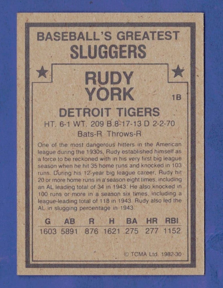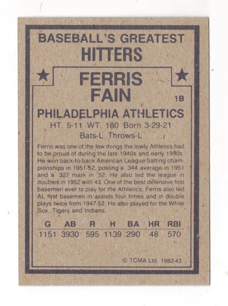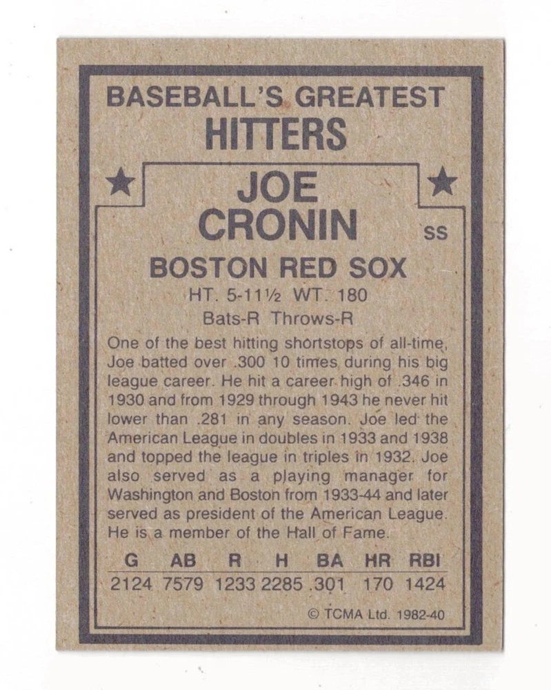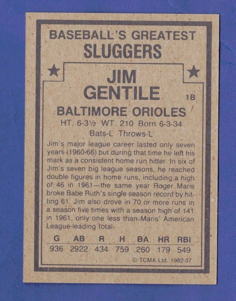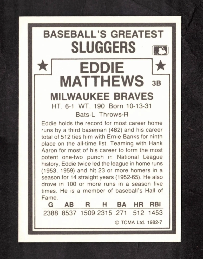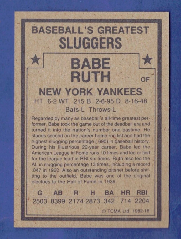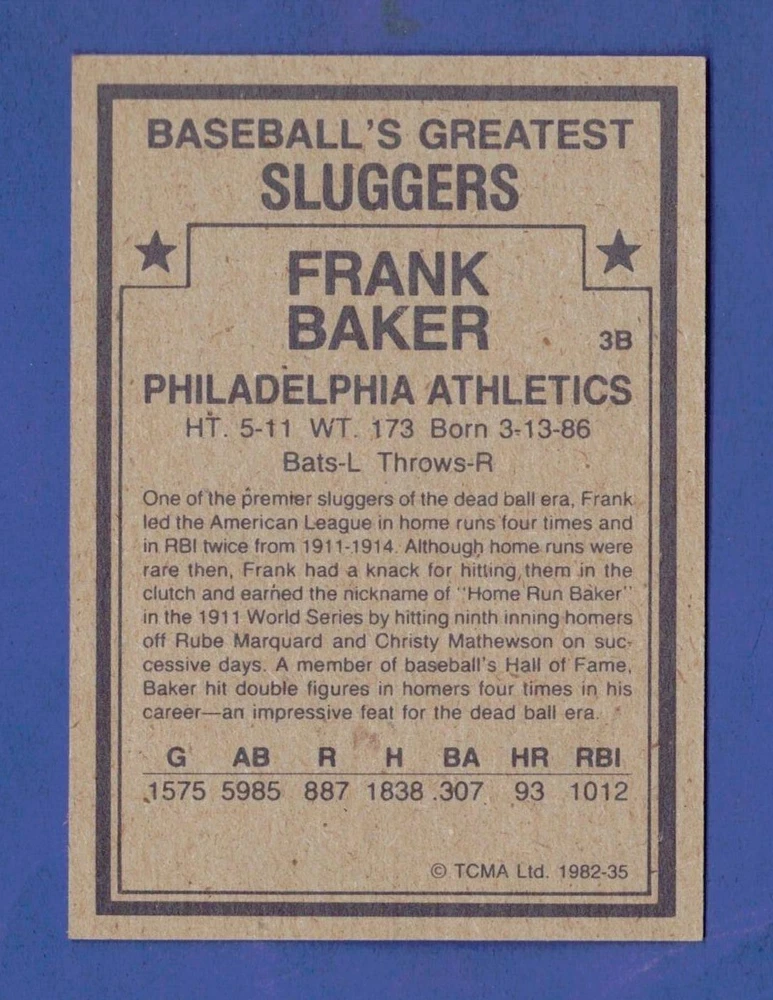 Pretty cool cards of the Baseball Greats. Condition is very nice, probably EX+/NRMT on a large majority of these cards. These cards are from 3 different sets and there are some 'white backs' and some 'tan backs.' If I see a corner ding or back spot, etc., I will list it. Any questions? Please hit the 'contact seller' button prior to selecting any card and I can help. -YES, I scanned every card so you can see the exact card you will receive. Any condition flaws are noted on drop-down menu, but please zoom in on the scans and see for yourself. Shipping for THIS LISTING is a FLAT $1.09 no matter how many cards you choose. Check out my feedback because, as a USPS retiree, I take my shipping very seriously... US bidders only. If it is POSSIBLE, I can try to combine shipping, but remember, I can't do the impossible! PLEASE check out my other auctions as I am starting to list cards from my Personal Collection (AGAIN AND AGAIN!) and who knows what I may list? Thank You VERYMUCH for checking out my stuff!