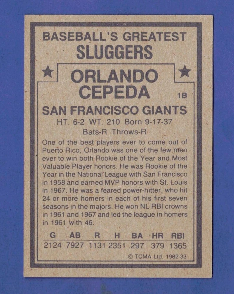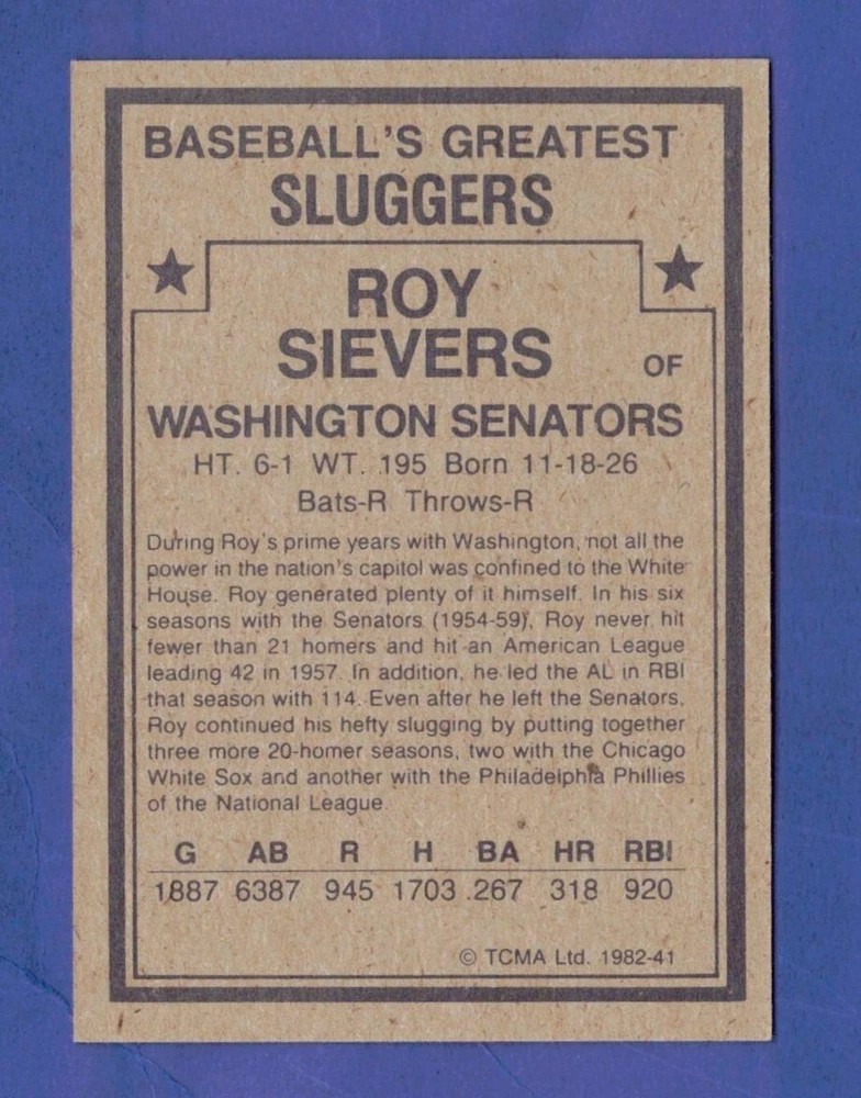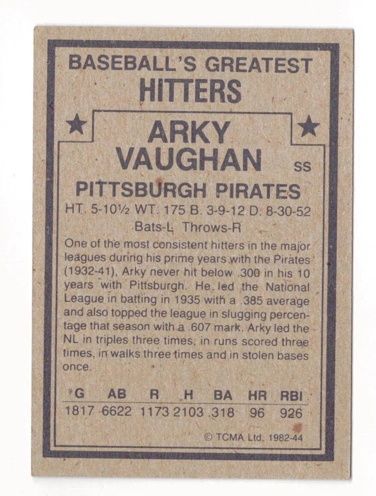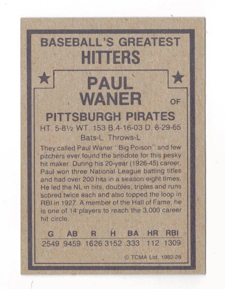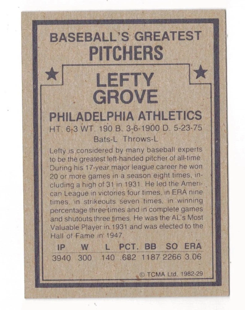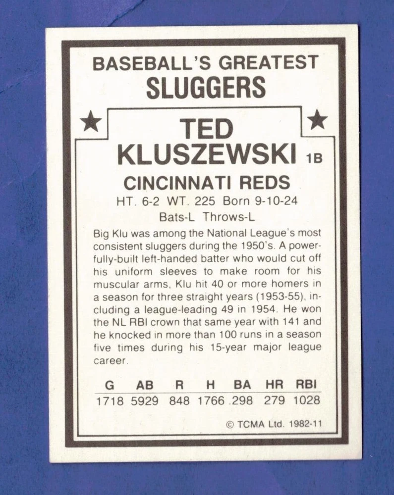 Pretty cool cards of the Baseball Greats. Condition is very nice, probably EX+/NRMT on a large majority of these cards. These cards are from 3 different sets and there are some 'white backs' and some 'tan backs.' If I see a corner ding or back spot, etc., I will list it. Any questions? Please hit the 'contact seller' button prior to selecting any card and I can help. -YES, I scanned every card so you can see the exact card you will receive. Any condition flaws are noted on drop-down menu, but please zoom in on the scans and see for yourself. Shipping for THIS LISTING is a FLAT $1.09 no matter how many cards you choose. Check out my feedback because, as a USPS retiree, I take my shipping very seriously... US bidders only. If it is POSSIBLE, I can try to combine shipping, but remember, I can't do the impossible! PLEASE check out my other auctions as I am starting to list cards from my Personal Collection (AGAIN AND AGAIN!) and who knows what I may list? Thank You VERYMUCH for checking out my stuff!