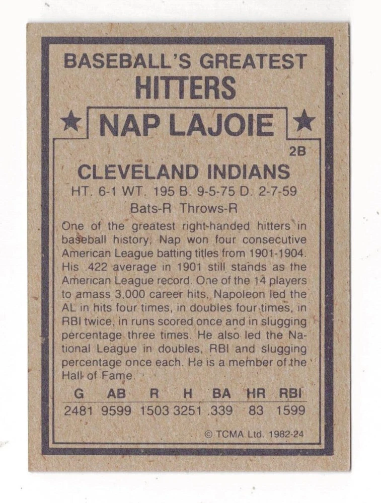 awesome 1982 TCMA 'Greatest Hitters' #24 Cleveland HOF 2B Nap Lajoie baseball card, great price, super fast shipping!