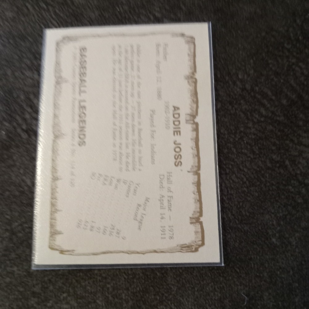 1983 Cramer Baseball Legends Series 4 Addie Joss #114 Cleveland Indians HOF....