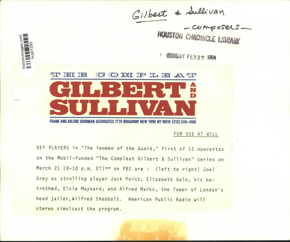 ebay template Note: Please study the images carefully to determine the condition of this vintage photograph, as it may not be in perfect condition. It may contain wrinkles, cracks, and possibly even tears due to its age and how it was handled before it got to us. A scanner may interpret colors and contrast differently than human eyes will, so it is possible that the actual photograph may be slightly darker or lighter in person. This vintage photograph is offered for sale as a collectible item and conveys no transfer of copyright. 1984 Press Photo Cast of operetta of "The Compleat Gilbert & Sullivan on PBS. This is an original press photo. Key players in "The Yeomen of the Guard," first of 12 operettas on the Mobil-funded "The Compleat Gilbert and Sullivan" series on March 21 (8-10 p.m. ET) on PBS are: (left to right) Joel Grey as strolling player Jack Point PHOTO FRONT PHOTO BACK Historic Images Part Number: hcp01293 FAQs Q: Can I just download a digital version instead? A: No, we sell only vintage originals and do not make or distribute any copies, including digital ones. Q: Do you combine shipping and invoices? A: Multiple photos won on the same seller ID combine automatically through the eBay checkout process. If you encounter problems with this, send us a message via eBay messaging and we will send you an invoice. Due to eBay limitations, we cannot combine items won on our different seller IDs for a single shipping charge. Q: How quickly do you ship the items once paid? A: We ship within one business day after your payment clears. If you do not receive an "order shipped" email from us by the close of the second business day from submitting payment, please e-mail us via eBay messaging. Q: How do you make sure my photograph arrives safely? A: We package each order between two cross-corrugated pieces of cardboard to ensure that the package is as difficult to bend as possible. We then wrap each order in a plastic sheet to help protect against moisture. We want you to rest assured that we take every precaution to ensure that the photograph you receive will be in the same condition in your care as it was in ours. Q: Will the "Historic Images" watermark be on my photo when I receive it? A: No. This is a digital watermark we use to protect our images. It is not printed on the photo. Q: What are your office hours? A: eBay for us is a business, and a very fun one to be in! We are open M-F 9 to 5 (CST). Therefore, we do not return e-mails and phone calls over the weekend. We observe the following holidays: New Years Day, Memorial Day, Fourth of July, Labor Day, Thanksgiving and the day after Thanksgiving, Christmas Eve and Christmas Day. Q: Where did all these vintage photos come from? A: These original vintage photographs are from various news service and newspaper photo archives from locations around the country including: Boston, Detroit, Tampa, Chicago, Denver, Seattle, New Orleans, Milwaukee, Portland, Spokane, and more. We do not copy or reproduce any photographs -- every item is a unique vintage piece that was housed in a news archive. Q: Can I use this photograph in my book/blog/website? A: The short answer is no. There is no transfer of copyright for republication or reproduction with these photographs when you purchase them, and only photographs taken before 1923 are currently automatically in the public domain. Permission from the copyright holder, which usually can be identified from the back of each photo, must be sought to republish or reproduce the image for any purpose. Q: Do you relist items (in case I miss an auction ending)? A: Auction items that receive no bids are relisted in our store (historicimages-store on eBay) as a fixed-price item and at a higher price than the starting auction price. Q: Do you leave feedback? A: Yes, we always leave feedback for buyers. Our software monitors when our buyers leave us feedback, then notifies us that we can leave feedback for the buyer. Rest assured, if you leave feedback, we will do the same! Check out our family of eBay IDs: historicimages01 Sports Photos historicimages02 Entertainment Photos historicimages03 Americana Photos historicimages04 International & War Photos historicimages05 Transportation Photos historicimages-store Our largest fixed-price selection historicimages-market Hand-picked photos and our New Orleans collection historicimages-gallery Hand-picked photos Saturday night auctions About Us Historic Images was formed in September 2009, with a handful of scanners working out of a basement to digitize newspaper photo archives. We have since moved out of the basement, and we can now archive thousands of photos per day. Our company has worked with magazines and newspapers from Detroit, Boston, Denver, Seattle, Tampa, Chicago, and New Orleans, just to name a few. We are constantly adding to our inventory, and have assembled an archive of millions of photos to date. As our company evolved, we began our eBay business, which brings thousands of fresh auctions per week to the world's largest online auction marketplace. Our custom software systems and team of great employees allow us to efficiently scan and sell large photo archives online. At the very core of our company's DNA is a strong commitment to customer satisfaction and strict integrity for our product. Our promise to you is that we will do everything in our power to provide you a great buying experience. Copyright 2009 - Present, Historic Images, Inc. Sell Smarter with Kyozou. Inventory and Ecommerce Management