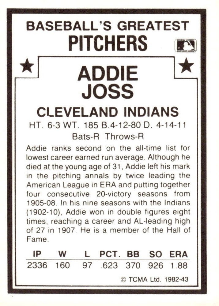 | Player/Athlete | Addie Joss |