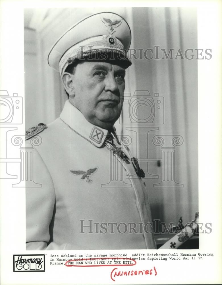ebay template Note: Please study the images carefully to determine the condition of this vintage photograph, as it may not be in perfect condition. It may contain wrinkles, cracks, and possibly even tears due to its age and how it was handled before it got to us. A scanner may interpret colors and contrast differently than human eyes will, so it is possible that the actual photograph may be slightly darker or lighter in person. This vintage photograph is offered for sale as a collectible item and conveys no transfer of copyright. 1988 Press Photo Joss Ackland in The Man Who Lived at The Ritz Miniseries This is an original press photo. Joss Ackland as the savage morphine addict Reichsmarxhall Hermann Goering in Harmony Gold's four-0hour epic miniseries depicting World War II in France, The Man Who Lived at The Ritz - Miniseries Photo measures 8 x 10.25 inches. Photo is dated 12-08-1988. PHOTO FRONT PHOTO BACK Historic Images Part Number: hca42853 Sell Smarter with Kyozou. Inventory and Ecommerce Management