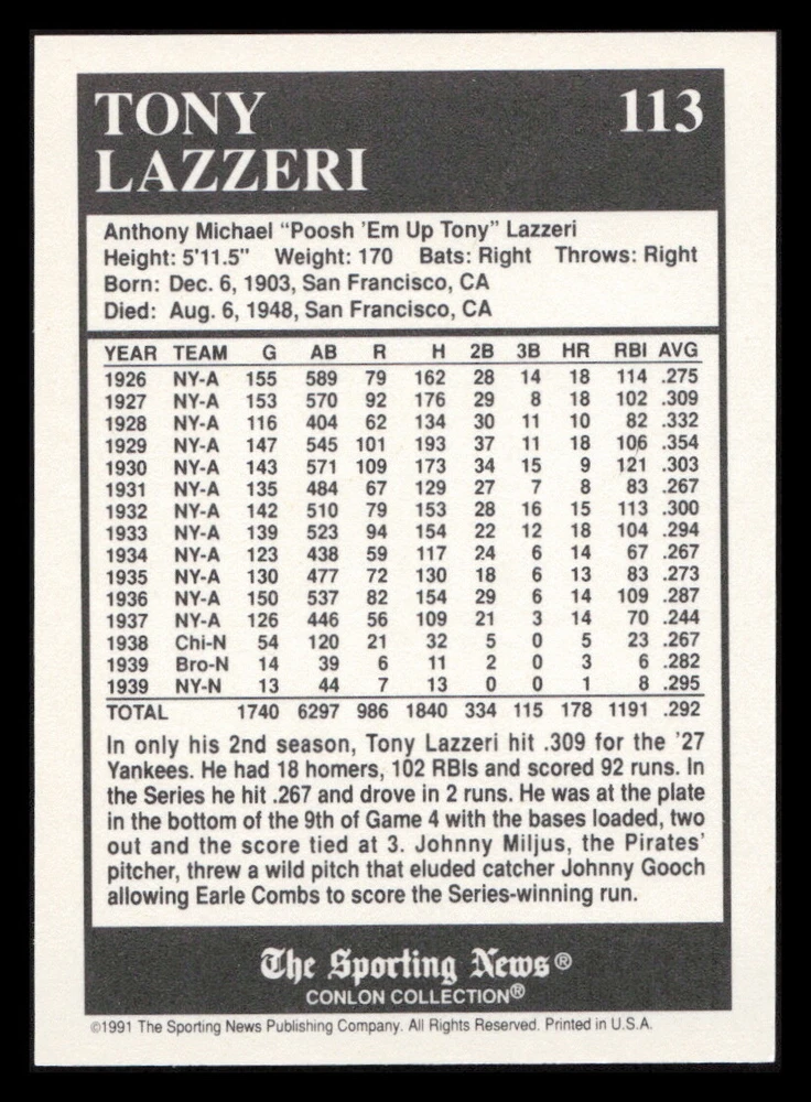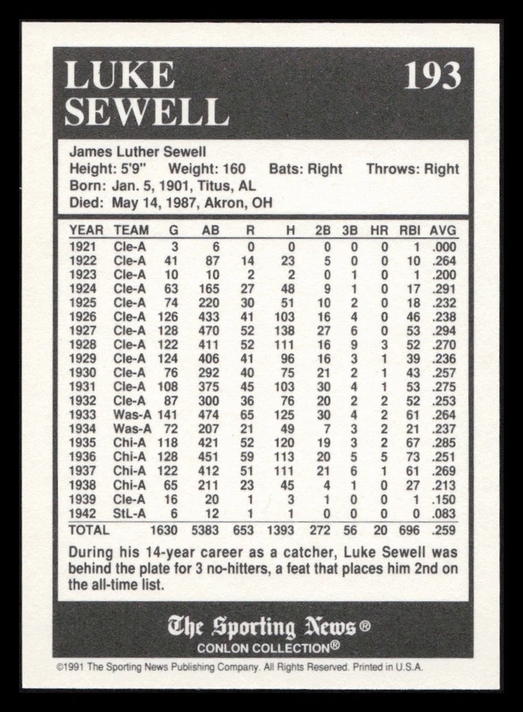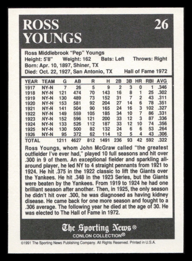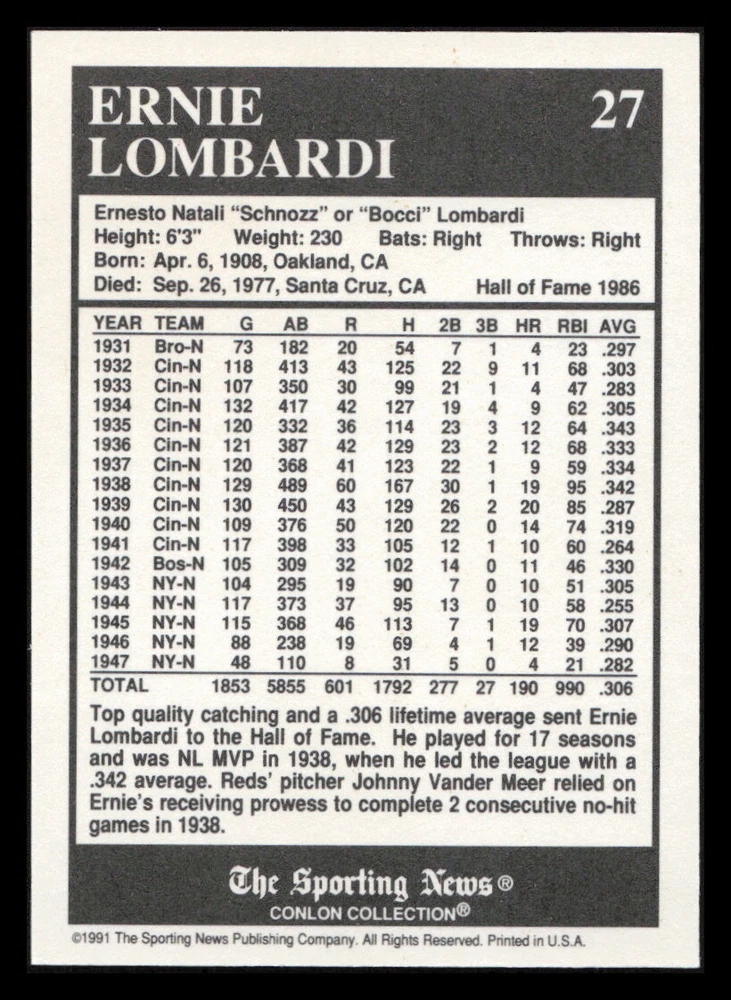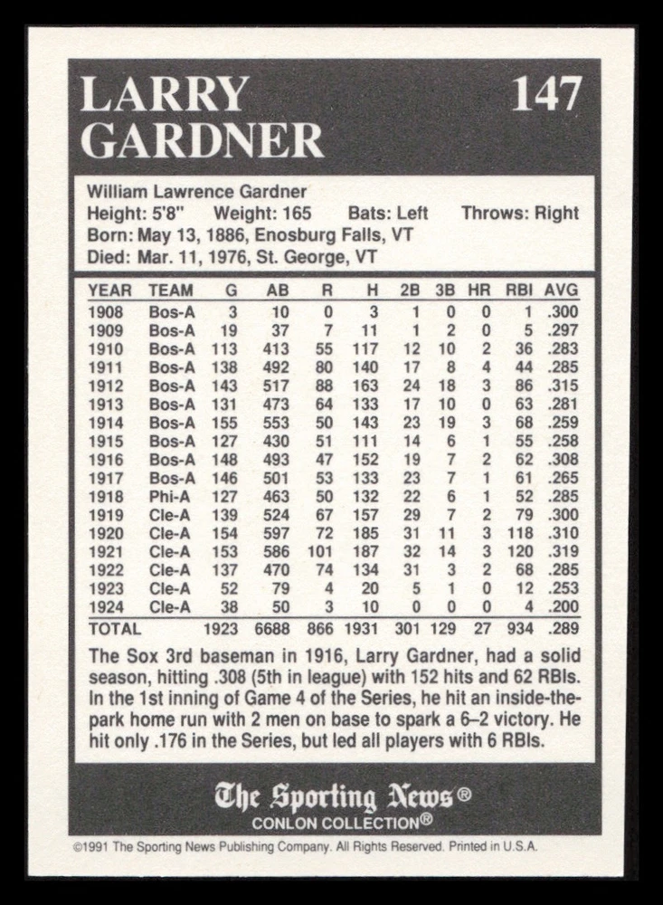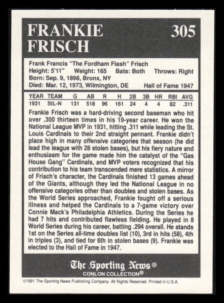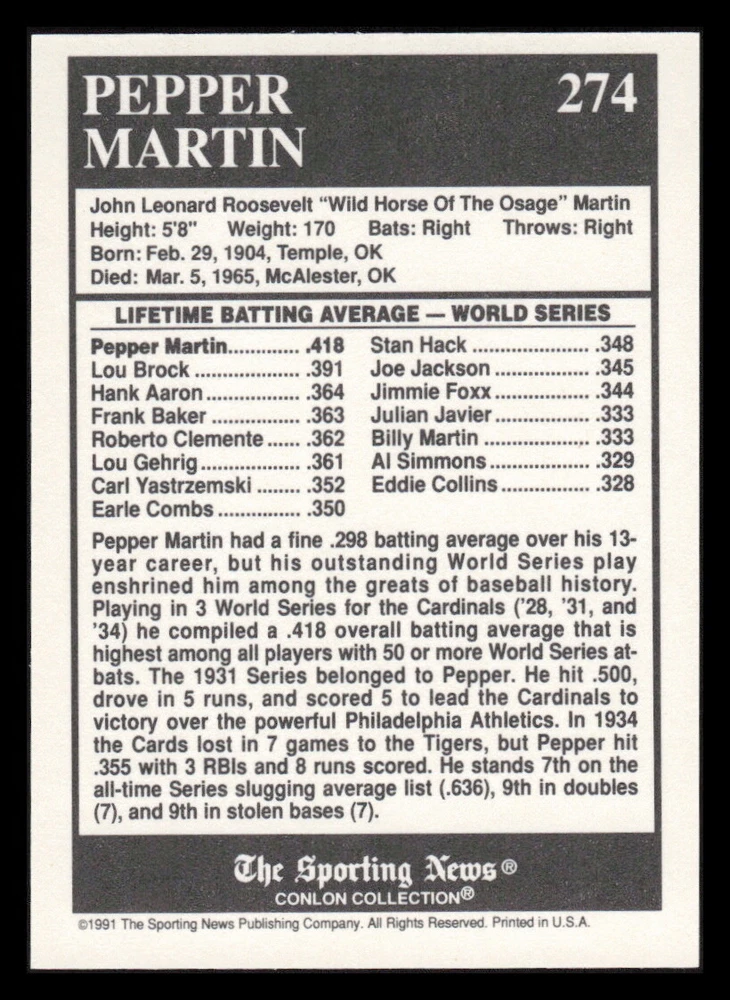 | Set | 1991 The Sporting News Conlon Collection |