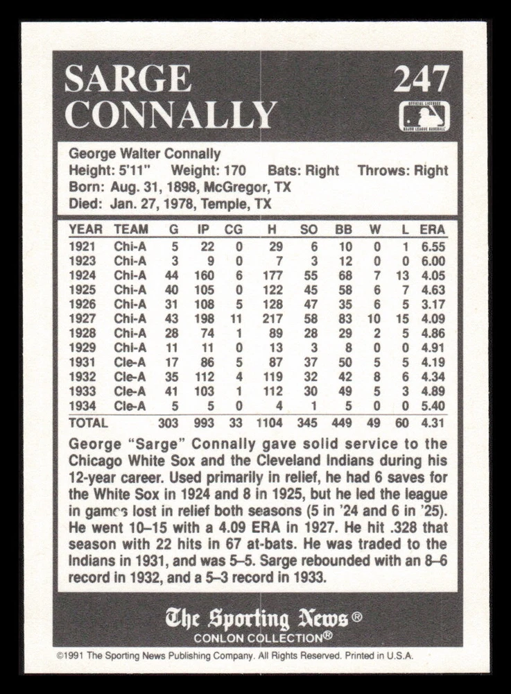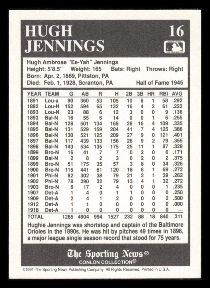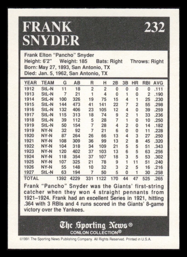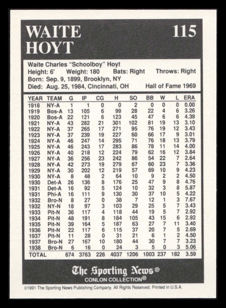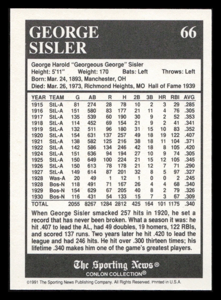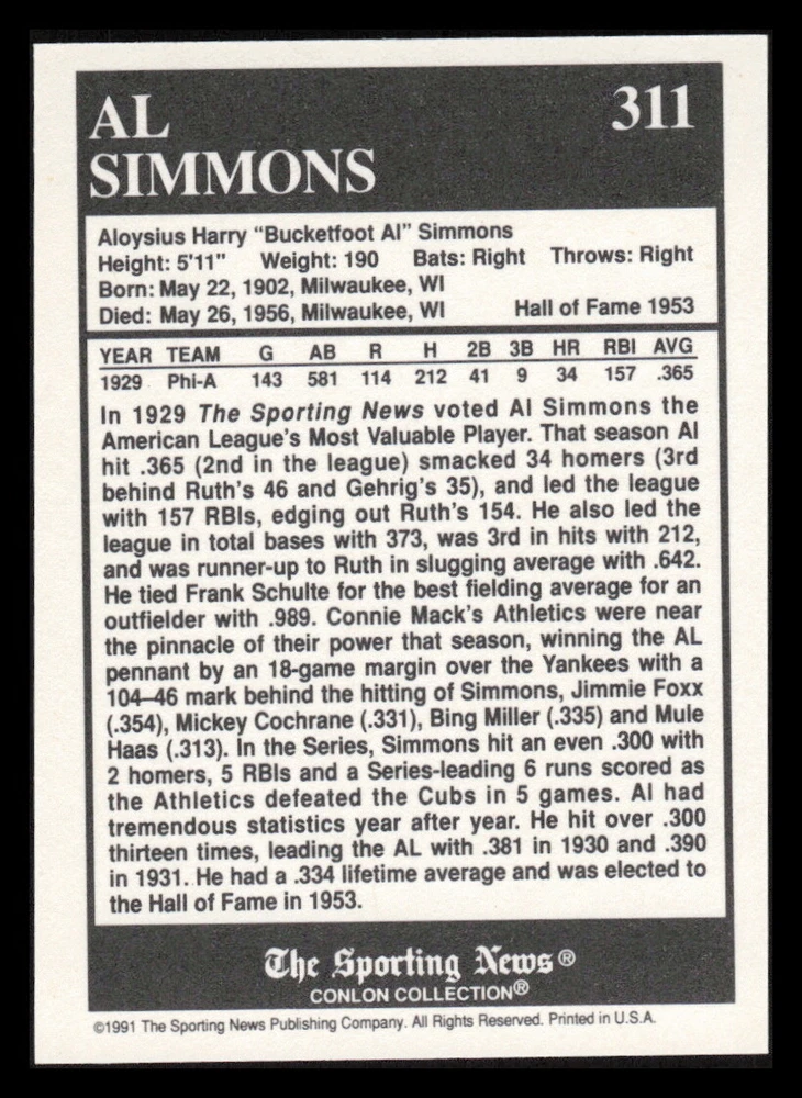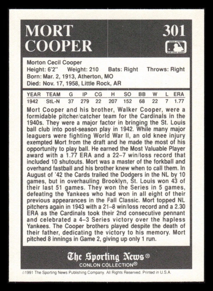| Set | 1991 The Sporting News Conlon Collection |