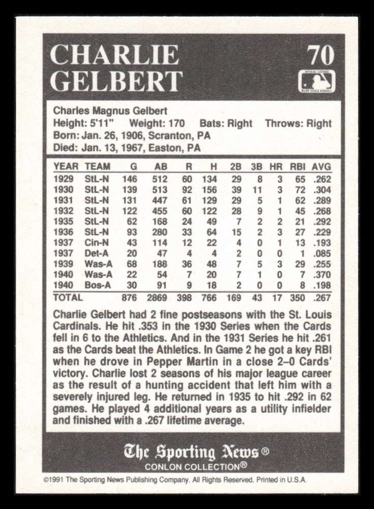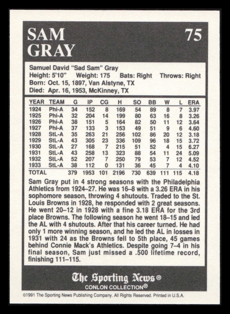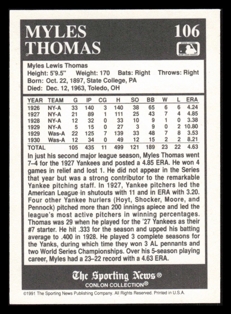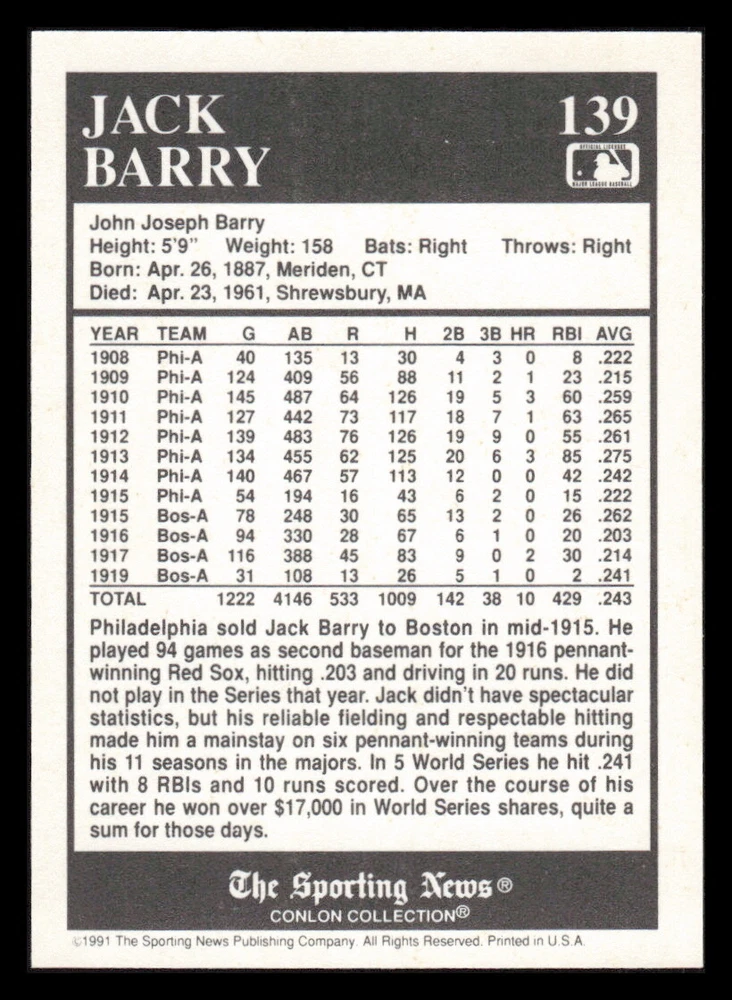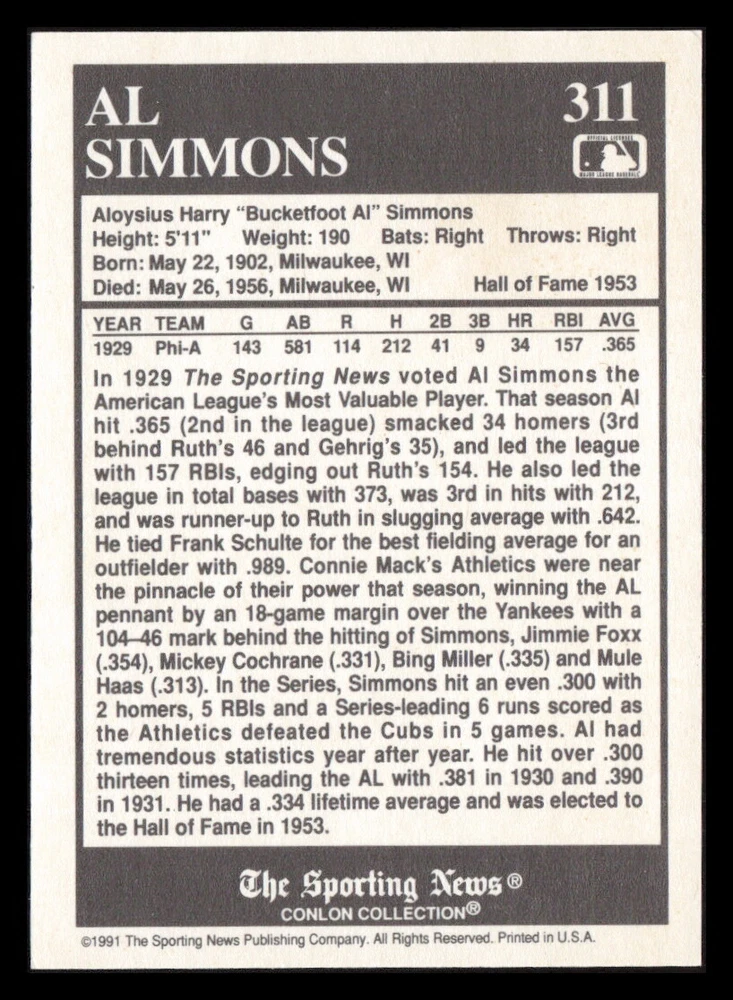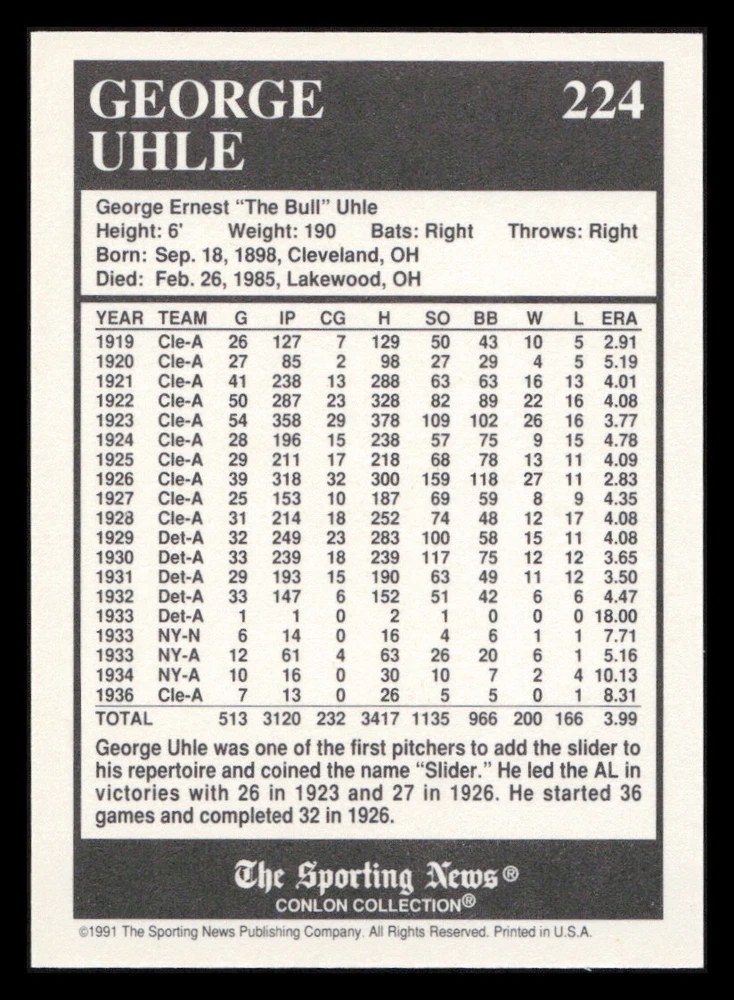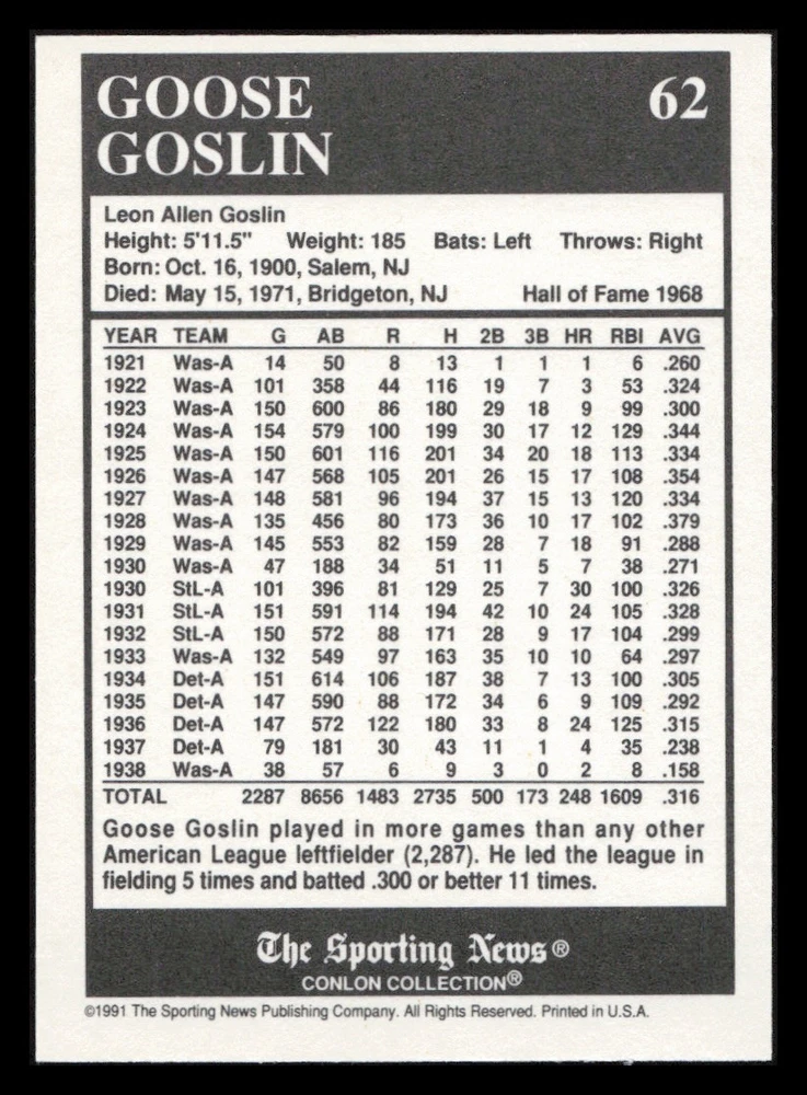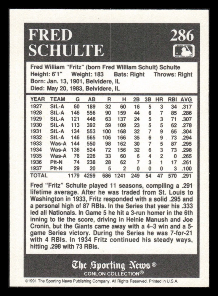 | Set | 1991 The Sporting News Conlon Collection |